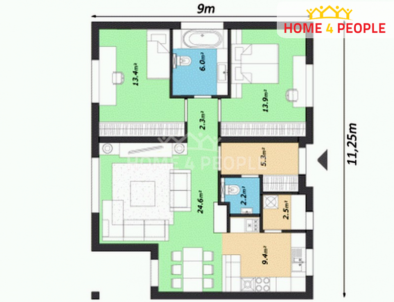 (Cena včetně domu na klíč, sítí, přístupové komunikace, pozemku a DPH.)