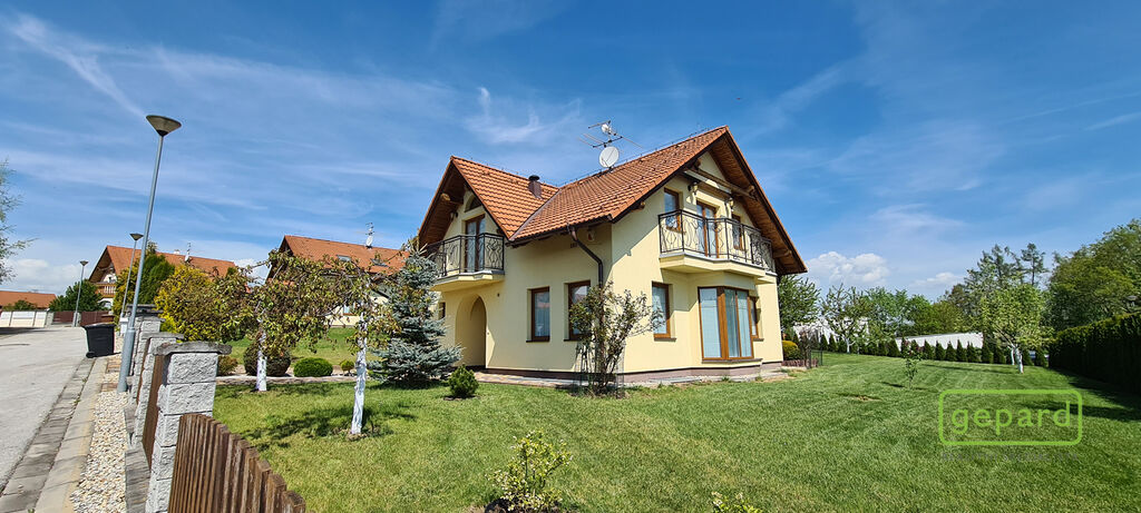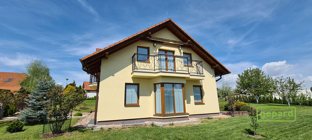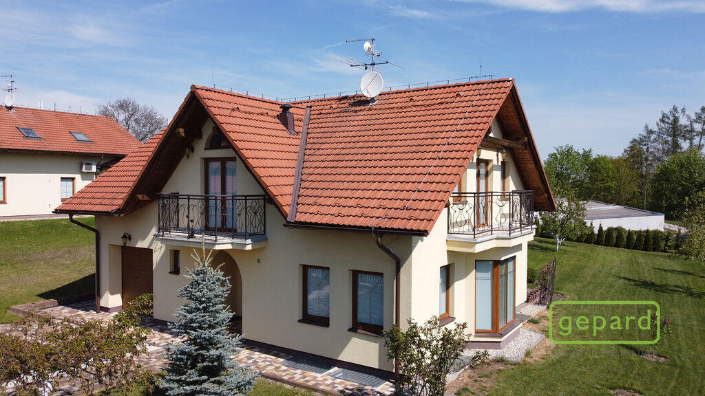 Dům je dále vybaven zabezpečovacím zařízením, videotelefonem, klimatizací, internetem a má také pergolu na dálkové ovládání. Od střešních oken VELUX po masivní dveře a obložky Sapeli, každý detail byl pečlivě promyšlen. Obvodové zdi POROTRHERM 40 cm + zatepleno.