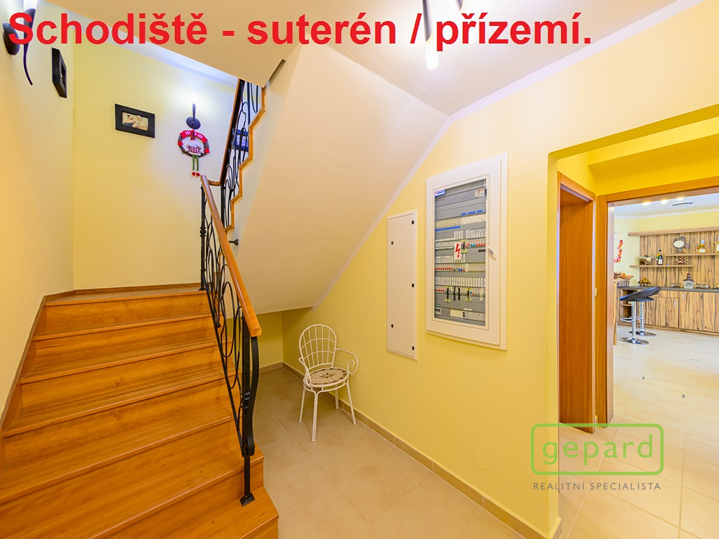 1/ Suterén obsahuje schodiště, chodbu, kotelnu/sklad, prádelnu, sklad a hobby místnost.