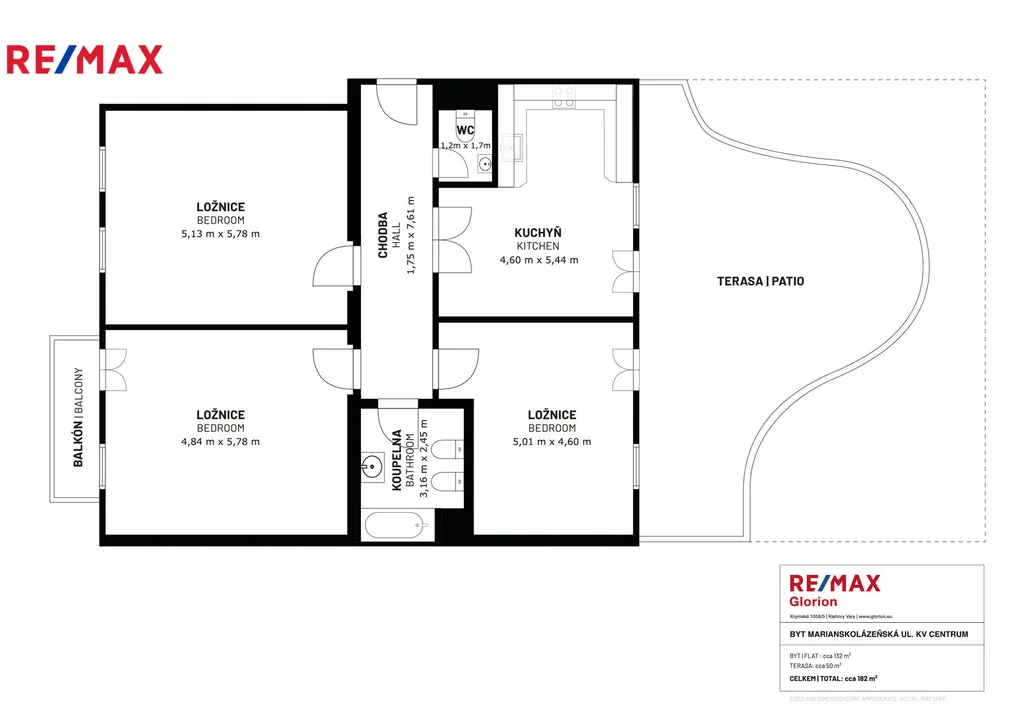Velkou výhodou tohoto bytu je terasa, na kterou je vstup z kuchyně a balkon.