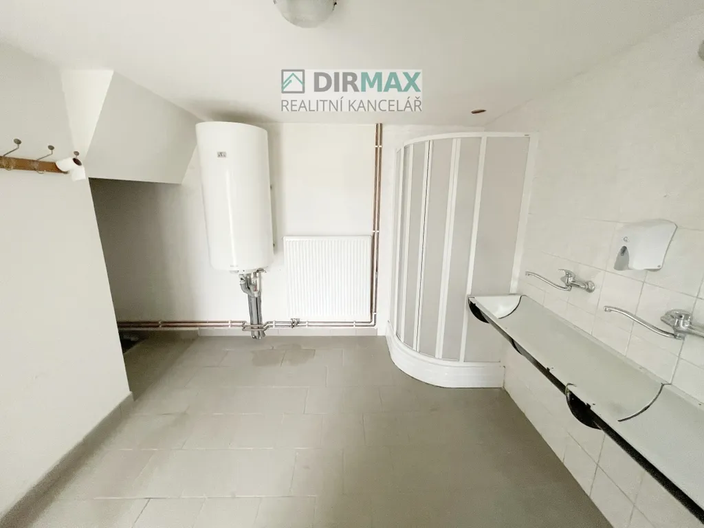 Při vjezdu je příjezdová brána a v pravé části pozemku je dvojpatrová, kompletně podsklepená vila vhodná k bydlení a trvalému obývání s číslem popisným! Může také sloužit k účelu centrály a kancelářskému využití, bydlení. Zejména kancelářské využití bylo i do současnosti. V prvním patře jsou 3 místnosti, samostatná koupelna a oddělená toaleta. Kompletní osvětlení jednotlivých místností. Po schodišti se pak jde do druhého patra, kde jsou prakticky stejné dispozice, tedy tři místnosti a vlastní sociální zázemí. Vila je kompletně podsklepená - velké sklepy, v některých částech i větší členění. Všechny okna stavby jsou plastová, vila je zděná. Sítě tady jsou, napojení na vodu i kanalizaci a vlastní tepelné čerpadlo, které slouží na vytápění a teplou vodu. Dále jsou na pozemku 4 větší garáže a sklady. Protější budova je patrová a prostory jsou natolik velké, že tady může stát i větší zemědělská nebo stavební technika, traktory atd. Dále je tady menší domek, budova, fungující jako technické zázemí. Komunikace i v rámci areálu je asfaltová. Na pozemek navazuje vlastní zahrada. Okolí je v kombinaci obytné zástavby s lehčí výrobou.