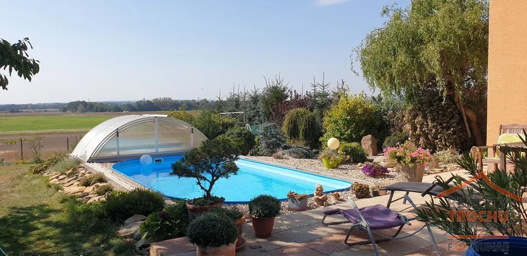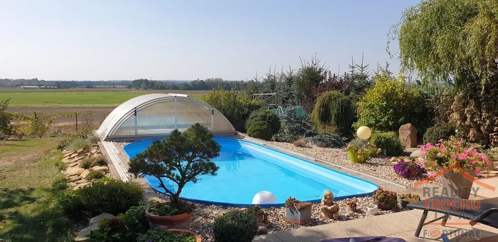 Chcete bydlet v přírodě a kousíček od Hradce Králové? Pak právě pro Vás nabízíme k prodeji polovinu patrového dvojdomu o dispozici 4+kk s bazénem o vnitřní ploše 184 m2 + terasa se zimní zahradou 26 m2 + 2 balkony 10 m2 + garáž 20 m2 . Rodinný dům se nachází v obci Skalička (Skalice) vzdálené cca 10 minut od centra města Hradec Králové. Pozemek o celkové výměře 939 m2 díky své poloze poskytuje dostatek soukromí. Můžete relaxovat na zahradě s okrasnou skalkou, koupat se v krytém vyhřívaném bazénu nebo grilovat na slunné terase.