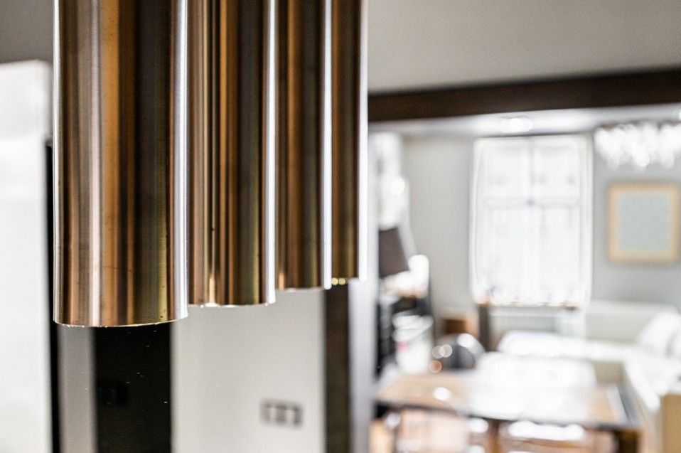 Kompletní vybavení zahrnuje: dřevěné podlahy a dlažba, podlahové vytápění v koupelně, bezpečnostní dveře, kompletně vybavená kuchyňská linka všemi spotřebiči, myčka, pračka, sušička, TV, domácí vrátný.