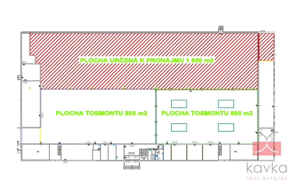 KAVKA REAL ESTATES Vám exkluzivně zprostředkují k pronájmu, výrobní či skladové prostory o užitné ploše 1850 m2, které se nacházejí v uzavřeném komerčním areálu Otín u Jindřichova Hradce. Dispoziční členění 1.NP – skladová hala o výměře 1850 m2, výška stropu 5,3 m, přístupná přes vrata a expediční rampu. Dispoziční členění 2.NP – kanceláře, sklad, šatny, sprchy a toalety (veškeré zázemí pro zaměstnance). Ihned je k dispozici 2,5 MW. Budova je určena především pro výrobu, ale je možné využít i jako skladové prostory. V případě zájmu o více informací či prohlídku kontaktujte makléře společnosti.