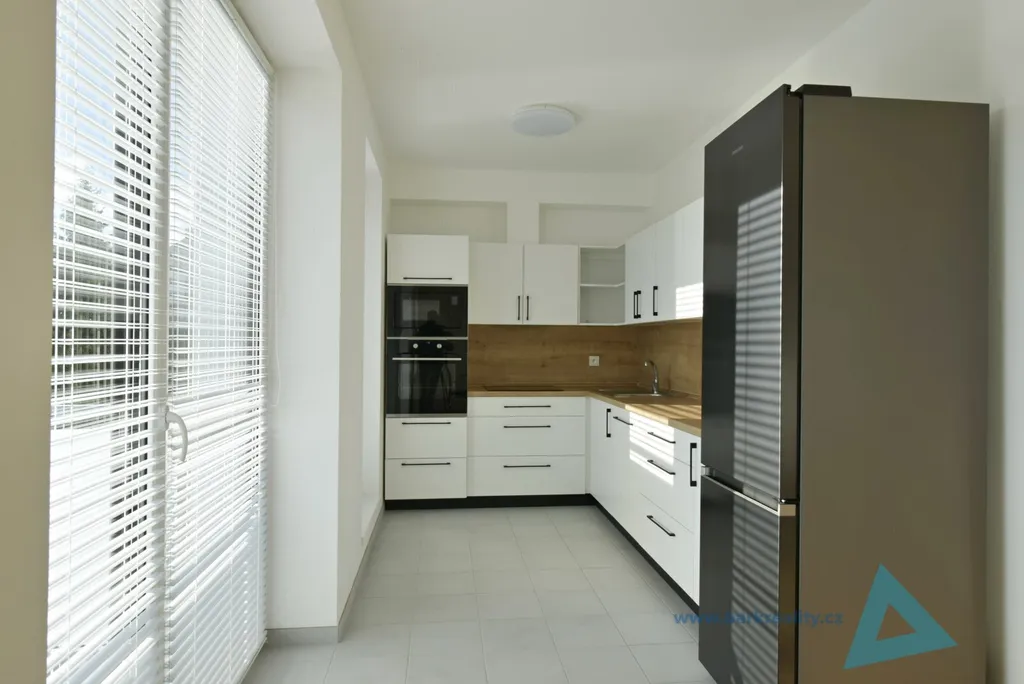 Součástí vybavení je nová kuchyňská linka se spotřebiči (včetně lednice a myčky), vestavěná skříň v chodbě, úložná skříň v koupelně a TV stolek v obývací části. Prostorná koupelna nabízí moderní sprchový kout, umyvadlo, topný žebřík a přípojku na pračku. Samozřejmostí je možnost připojení k internetu a společné anténě.