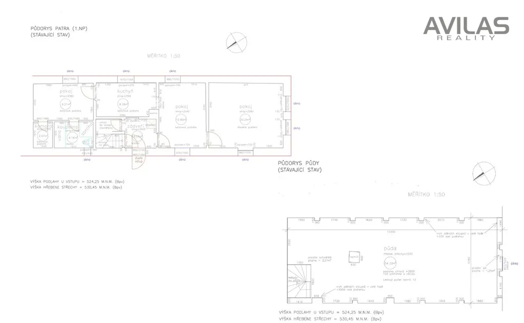 Dům je z části podsklepený, vstup do sklepa je z chodby, kde vede i schodiště na půdu.