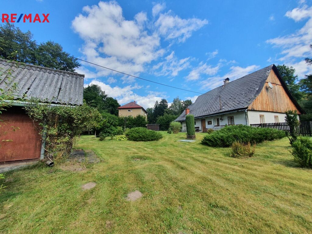 Budova (chalupa) o užitné ploše cca 106 m2 (+17 m2 dílna) a zahradním domkem má k dispozici zahradu o celkové výměře 3720 m2 včetně zastavěné plochy a nádvoří. Celá tato plocha je podle platného územního plání vedená jako zastavitelná plocha, tudíž je možné zahradu rozdělit například na tři parcely s přístupovým pozemkem a využít k výstavbě dalších rekreačních objektů viz návrh v inzerci. Budova (chalupa) s dispozicí 4+kk (viz půdorys v galerii fotek) je vytápěna kamny na tuhá paliva ve dvou místnostech a také zrenovovanými kachlovými kamny. Všechna okna v chalupě jsou dřevěná (kastlová) a jako zdroj vody je zde napojení na vlastní studnu, ovšem v obci je zbudován i vodovod. Odpady v chalupě jsou vyvedeny do jímky a napojení na elektřinu je samozřejmostí.