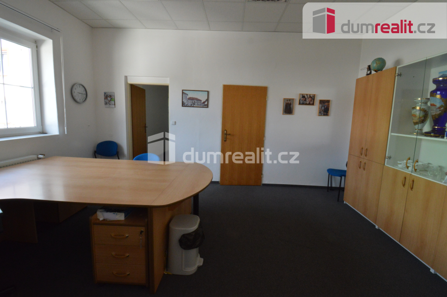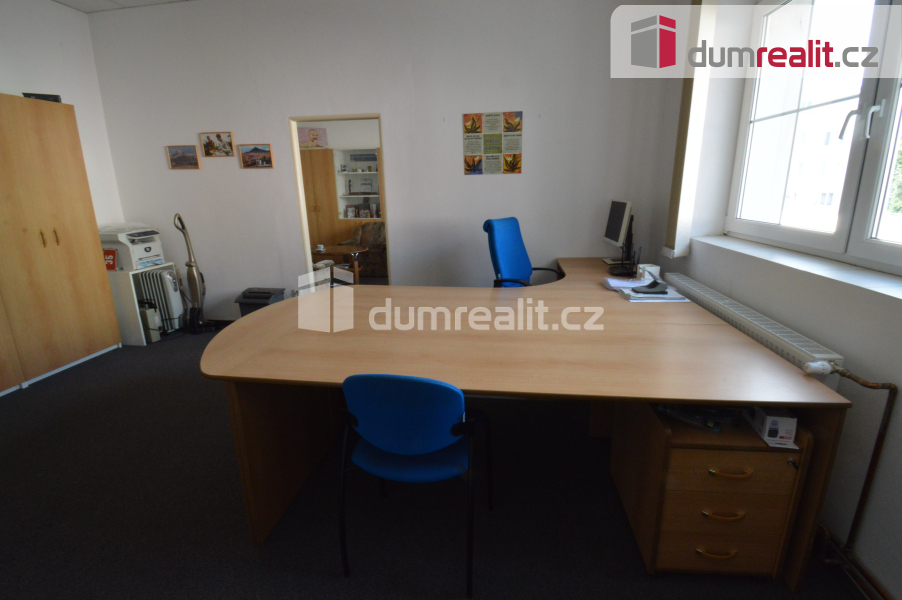 Dumrealit.cz Vám zprostředkuje pronájem 2 kanceláří o ploše 51 m², v centru města v ul. Osvoboditelů v Lovosicích. Kanceláře jsou oddělené dveřmi a nacházejí se v 1.patře. Možnost přenechání vybavení, které je na fotografiích, nebo prostor případně lze vyklidit. K dispozici vlastní sociální zařízení (WC) a kuchyňka s lednicí. V případě zájmu lze parkovat osobním automobilem ve vnitrobloku domu. Nájem 10.000,- Kč + DPH, + zálohy na elektřinu, vodu a plyn. Kauce ve výši 10.000,- Kč. V případě zájmu o prohlídku, kontaktujte makléřku nemovitosti. Ev. číslo: 644757.