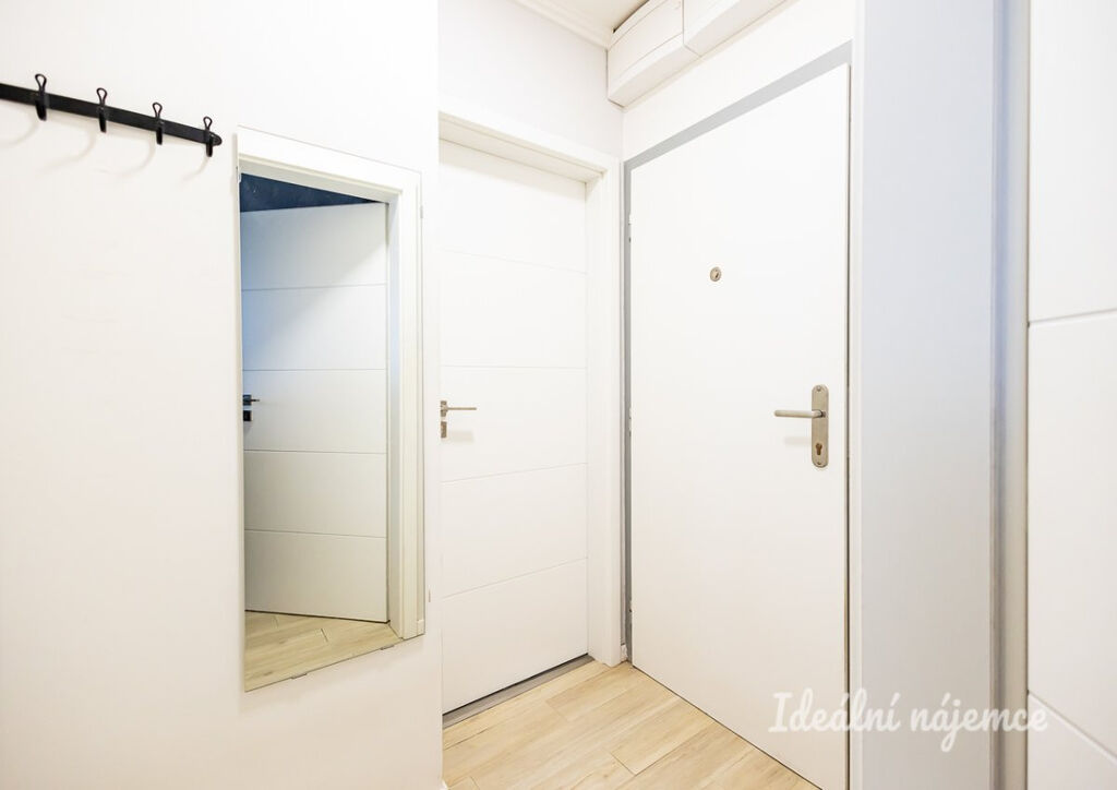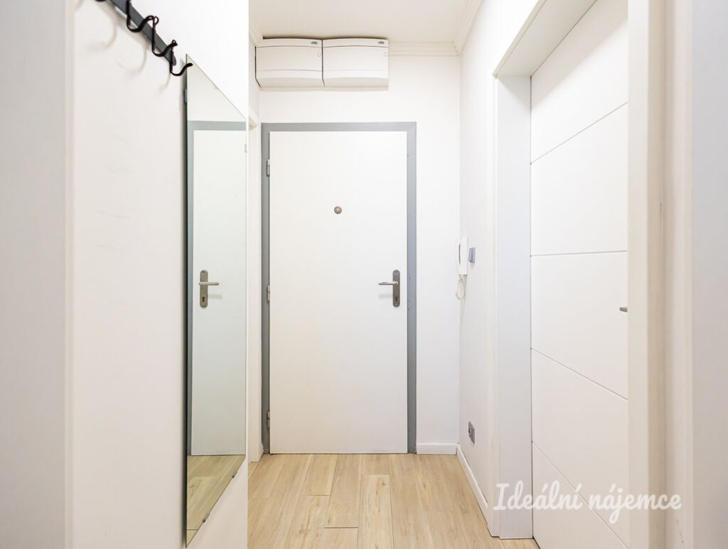 Byt prošel zdařilou rekonstrukcí a nabízí se částečně vybavený. Kuchyně disponuje lednicí, myčkou, elektrickou troubou, varnou deskou, mikrovlnnou troubou, digestoří a pračkou. Obývací část bude nevybavená (nábytek na fotografiích bude vyklizený). Součástí ložnice je postel a vestavěná skříň na míru. V koupelně je sprchový kout, umyvadlo a toaleta.