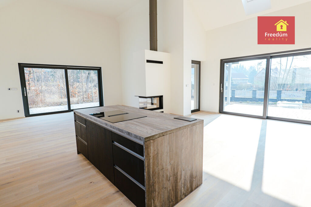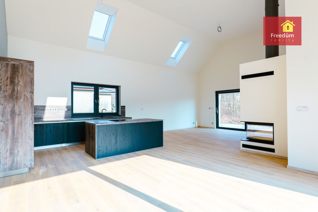 Dům je dále vybaven celkem čtyřmi střešními okny Velux s koeficientem prostupu tepla U=1,1 w/m2K, přičemž tři z těchto oken jsou taktéž otevírány elektricky a jsou napojené na inteligentní domácnost.