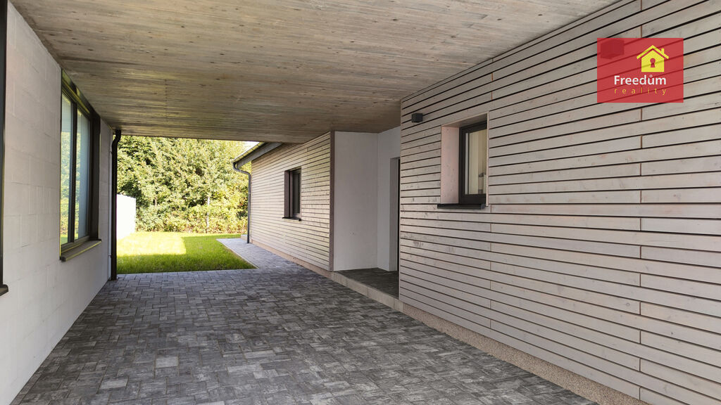 V přístřešku u domu se nachází příprava na instalaci Wallboxu pro nabíjení elektromobilu.
