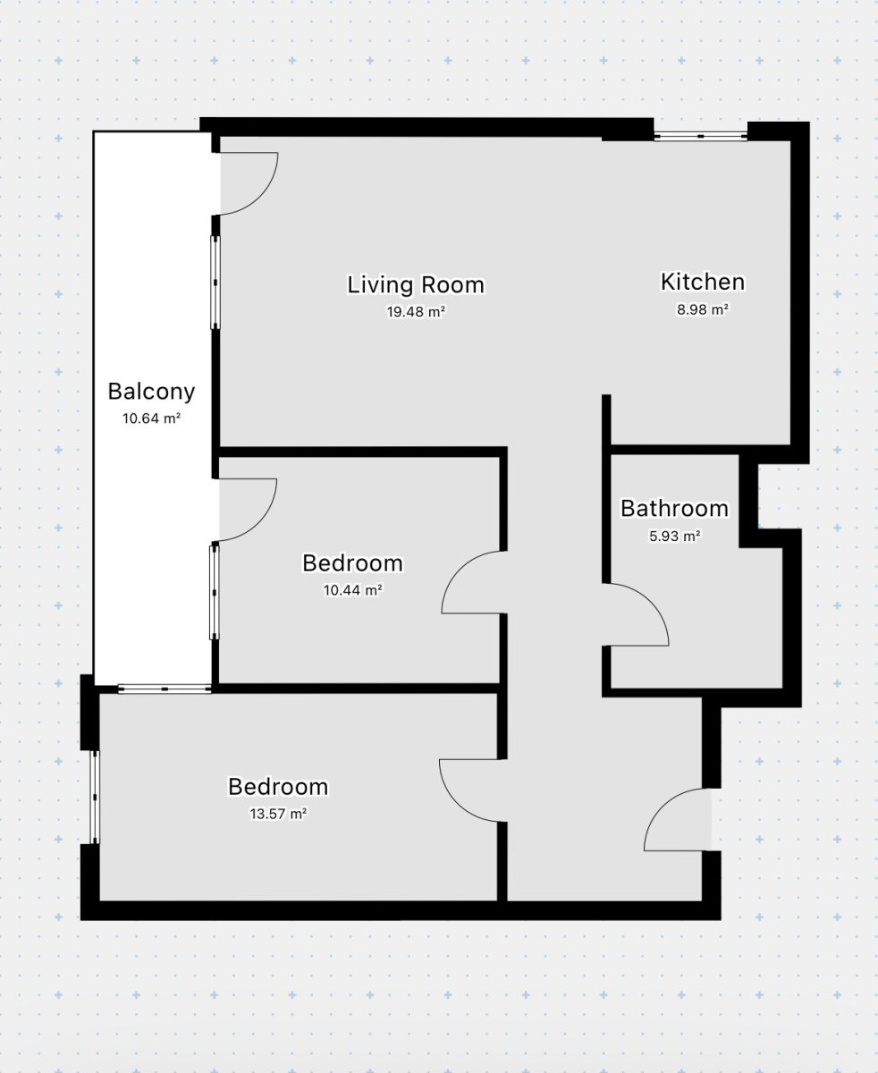 Byt se nachází ve 3. patře cihlového domu. Skládá se z centrální chodby vybavené velkou vestavnou skříní, společné koupelny s vanou a toaletou, ložnice, dětského pokoje a obývacího pokoje spojené s kuchyňským koutem.