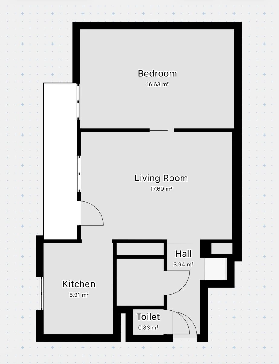 Byt s výměrou 49m2 tvoří vstupní chodba s nadstandartním množstvím úložného prostoru.