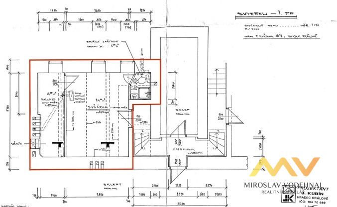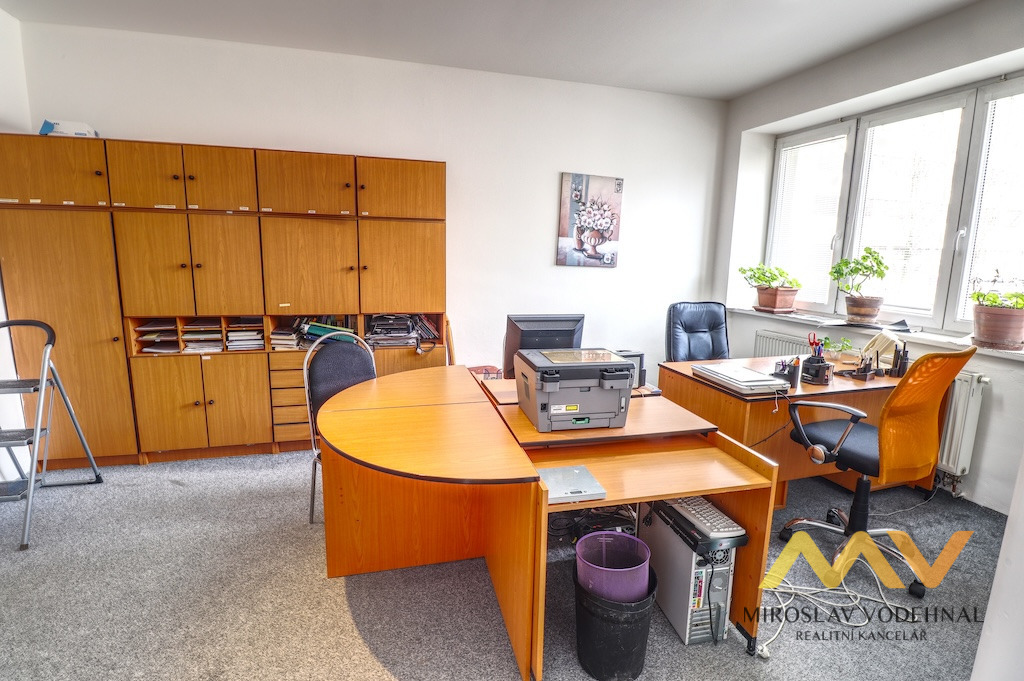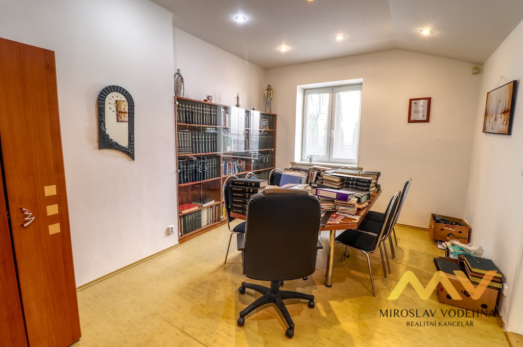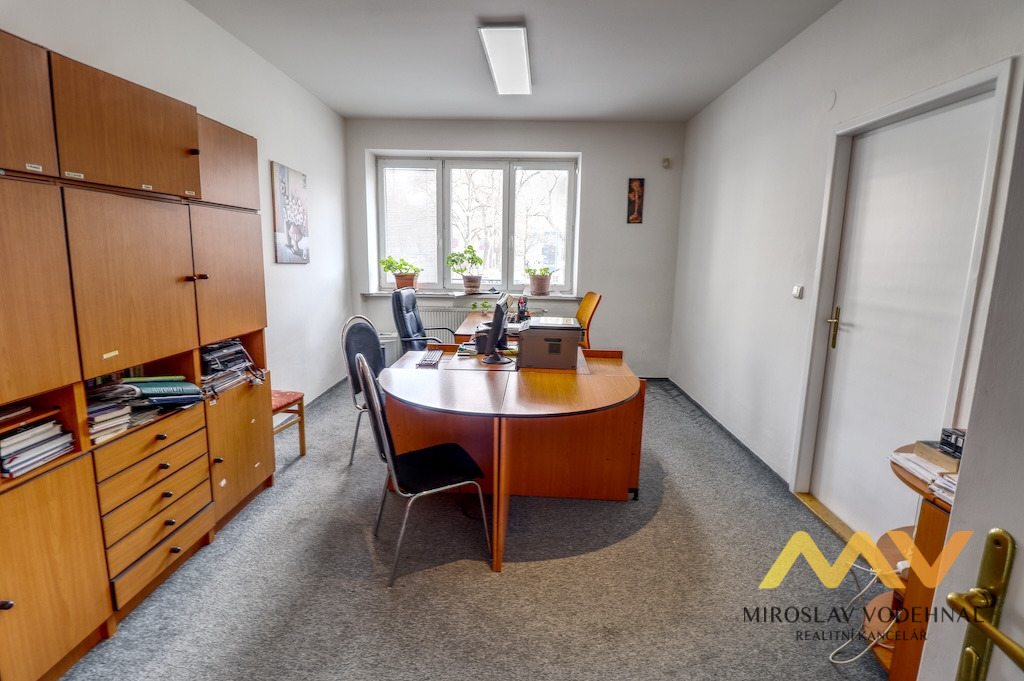Jedná se o prostory rozděleny do dvou podlaží spojené vnitřním točitým schodištěm a jsou situovány do 1. NP a suterénu cihlového bytového domu. Vhodné jsou zejména jako reprezentativní kanceláře a jsou nabízeny včetně interiérového vybavení. Součástí je kuchyňský kout v 1. NP a příprava v suterénu, 2x WC, sprchový kout. Dům je po rekonstrukci, plastová okna, vytápění vlastním plynovým kotlem.