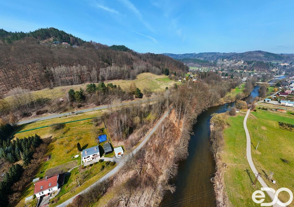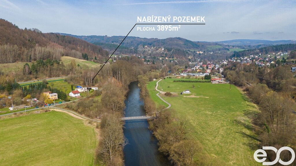 Rozlehlý stavební pozemek k prodeji – o výměře 3 895 m² na slunném jihovýchodním svahu s  výhledem na údolí řeky Jizery a charakteristické skalní vyhlídky protějšího břehu.