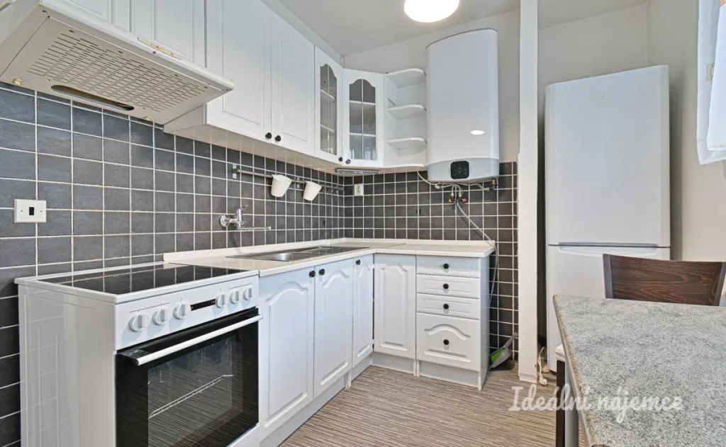 Byt se nabízí vybavený dle fotografií. Kuchyně disponuje jídelním stolem s židlemi, lednicí, elektrickou troubou, varnou deskou a digestoří. Obývací část je zařízena pohovkou, konferenčním stolem, knihovnou, šatní skříní, pracovním stolem s křeslem a postelí. V koupelně je sprchový kout a umyvadlo. Toaleta je umístěna samostatně.