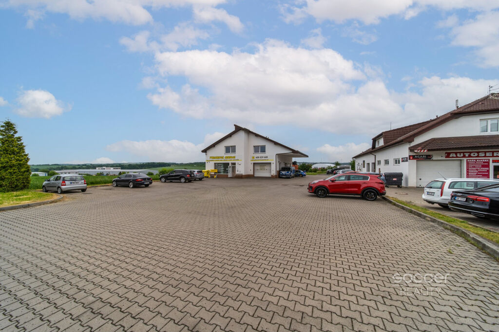K objektu náleží rozlehlé parkoviště pro zákazníky, možnost umístění reklamy u hlavní silnice.