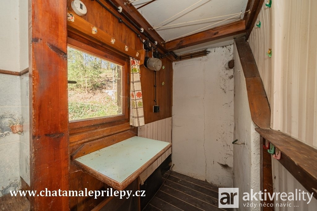 V přízemí vás čeká předsíň, malá komora a útulný obývací pokoj s koutem pro kuchyňku a s rustikálním krbem, kde si můžete užít teplé večery. Po krátkém výstupu po schodišti se dostanete do podkroví, které bude pravděpodobně sloužit jako ložnice, kde vás čeká klidný spánek a odpočinek po dni stráveném procházkami nebo výlety do okolní přírody. Do chaty je zavedena elektřina. Na chatu navazuje malá kůlna, kde je i místo pro chemické WC.
