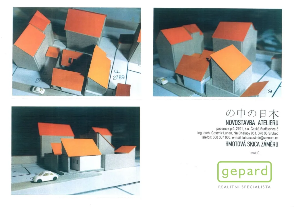 Celková plocha stavebního pozemku je 241 m2 a vlastníkem a zároveň zpracovatelem záměru a projektu byla již zpracována projektová dokumentace k uvedenému, včetně souhlasných stanovisek, přípojek (voda, plyn, elektro, kanalizace), smluv a vyjádření potřebných k následnému vydání stavebního povolení, naposledy - Kladné závazné stanovisko se stavebním záměrem – atelier (víceúčelová stavba) Magistrát města České Budějovice, odbor územního plánování.