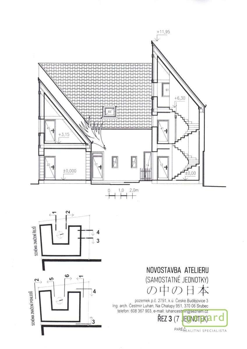 Nabízíme výhradně prodej stavebního pozemku se schváleným stavebním záměrem – výstavba, víceúčelová stavba, atelier s možností výstavby budovy za účelem následného využití (možný výběr):