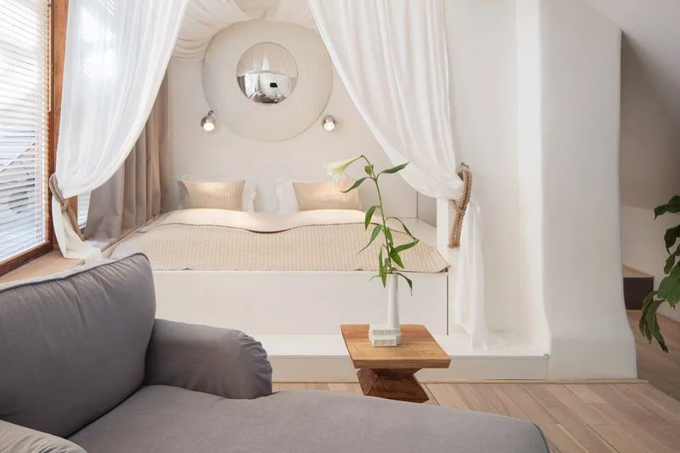 Duplex nacházející se v secesní budově, je plně zařízen moderním nábytkem vysoké kvality. Horní patro sestává z ložnice s king size bed a obývacího prostoru se sofa. Ve spodním patře je předsíň se šatní skříní, TV/SAT, WIFI, vybavená kuchyňská linka, jídelní prostor se židlemi a koupelna s WC.