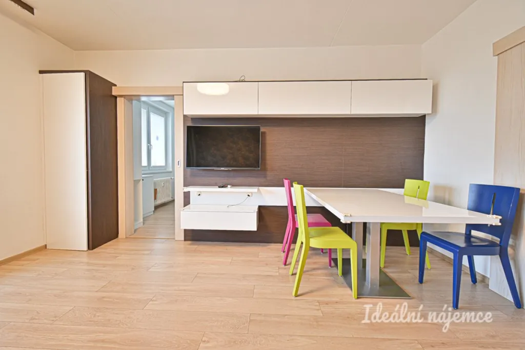 Byt se nabízí částečně vybavený dle fotografií. Kuchyně disponuje lednicí, elektrickou troubou, varnou deskou a digestoří. Obývací část je zařízena kvalitní pohovkou italské výroby, konferenčním stolem, televizí a jídelním setem. Součástí ložnice je postel a skříň. V dětském pokoji najdeme postele a šatní skříň. V posledním pokoji je vestavěná skříň.