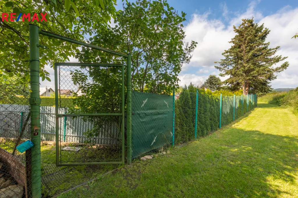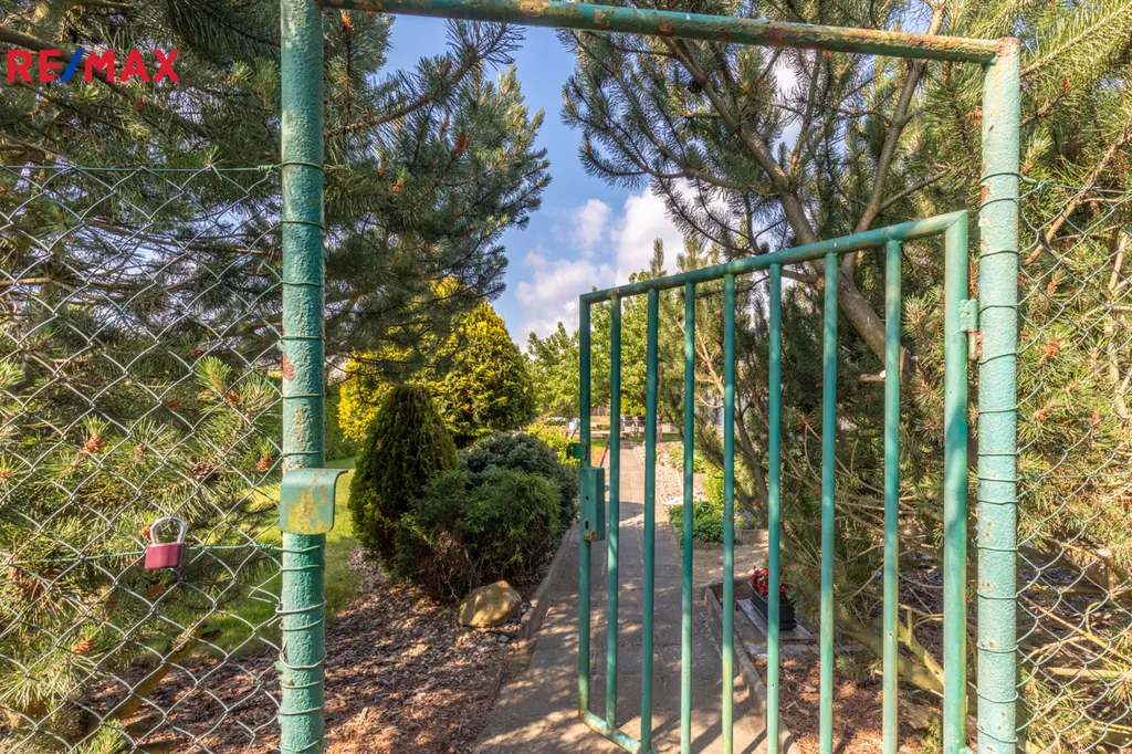 Zahrada je ideální nejen pro rekreaci a každodenní relaxaci celé rodiny, ale také pro nadšené pěstitele. Skleník o rozměrech 3 x 2,5 m ocení každý zahrádkář. Na zahradě rostou okrasné keře a plodící ovocné stromy jako třešeň, jabloň, broskvoň a slíva. Jsou zde také založené záhonky pro pěstování zeleniny, rajčat a dalších plodin. Zatravněná plocha je pravidelně udržována a opečovávána, což vytváří krásný zahradní koberec. V rohu zahrady se nachází zahradní plastová buňka s chemickým WC.