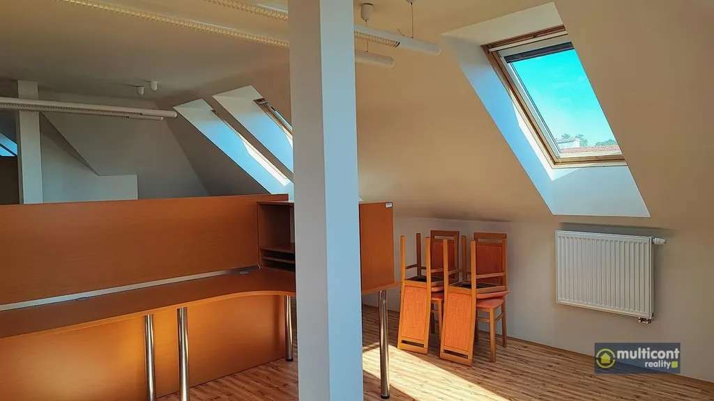 V pověření vlastníka, s radostí přicházíme s nabídkou nově rekonstruovaných a luxusních kancelářských prostor v centru Vyškova, na rohu ulic 9. května a II. odboje. Jedná se o nově opravené a vybavené kancelářské prostory v podkroví, tedy ve IV. nadzemním podlaží domu, kde si z minulosti lze pamatovat, že zde bylo zákaznické centrum VAK, či poslanecká i senátorská kancelář. Kancelář je to velmi vzdušná, opatřena střešními okny, klimatizací, nábytkem (není podmínka přijmout), veškerou technickou přípravou k zapojení počítačů a dalších zdrojů z mnoha míst, dislokovaných v podlaze kanceláře, vlastním sociálním zařízením, WC i koupelna, taktéž kuchyňským koutem. Kancelář má vlastní zdroj topení (plynový kotel), vlastní měřiče spotřeby elektrické energie i vody. V okolí domu parkovací místa, nabídka vhodná pro reprezentativní prostory zavedených firem a podnikatelských subjektů, které preferují moderní střih vzdušné a bezbariérové kanceláře, kde je zajištěna variabilita v tom, že kancelář lze rozdělit na menší zóny nábytkem, nikoliv příčkami a zdmi, což přispívá k atmosféře a přátelskému pracovnímu klimatu. Podlahová plocha místností je 118 m2. Prostory možno pronajmout ihned, prohlídky po dohodě o termínu, s minimálně denním předstihem, rádi zajistíme. Konstantní složkou nákladů je nájemné ve výši 120 Kč/m2/měsíc a dohodnuté zálohy na odběr energií, hrazené majiteli, které jsou jednou ročně zúčtovány a vyúčtovány (doplatek/přeplatek). Vratná jistota ve výši 1 měsíčního nájmu, provize částka, rovnající se 1 měsíčnímu nájemnému.