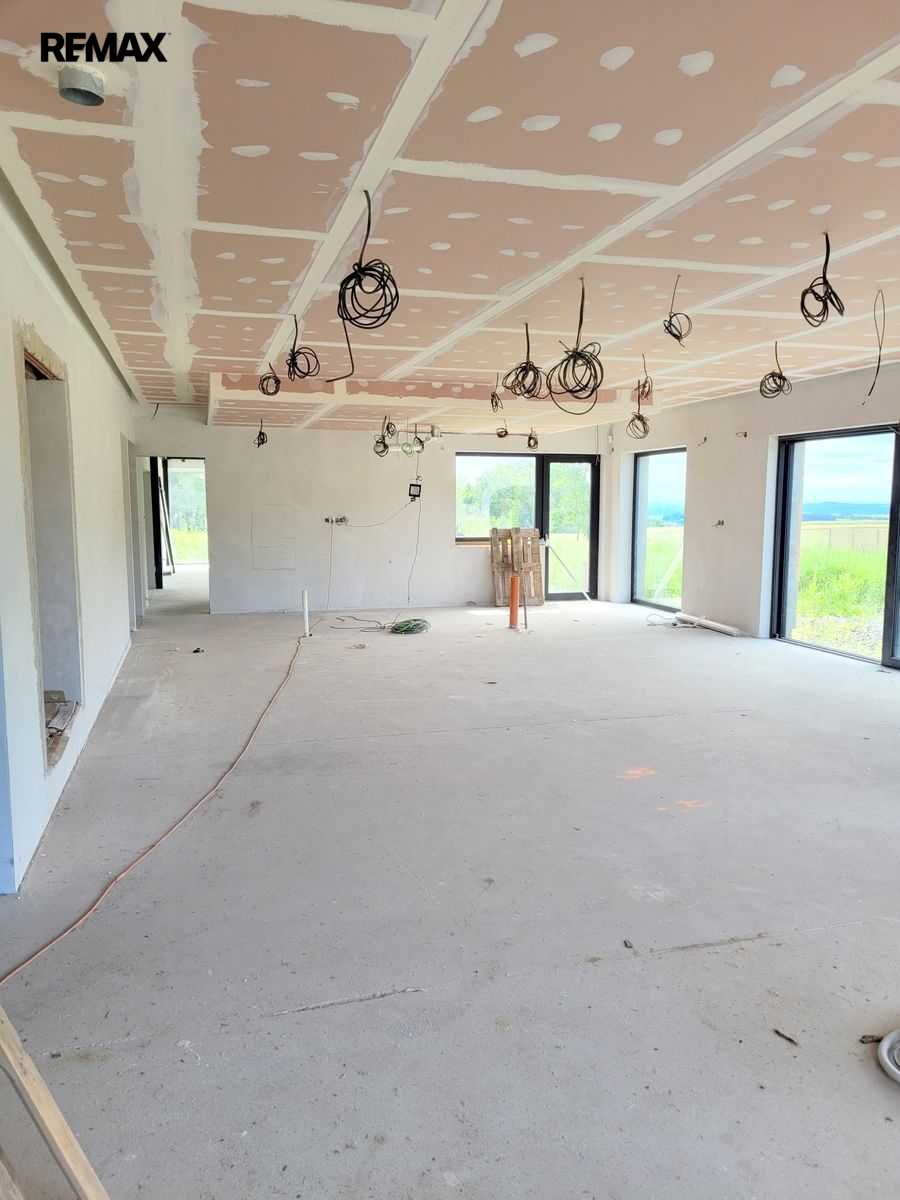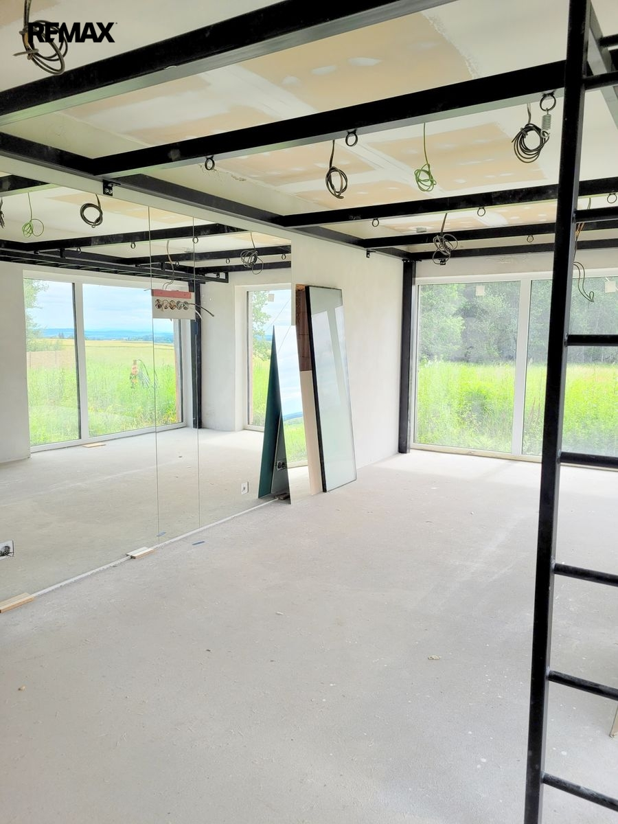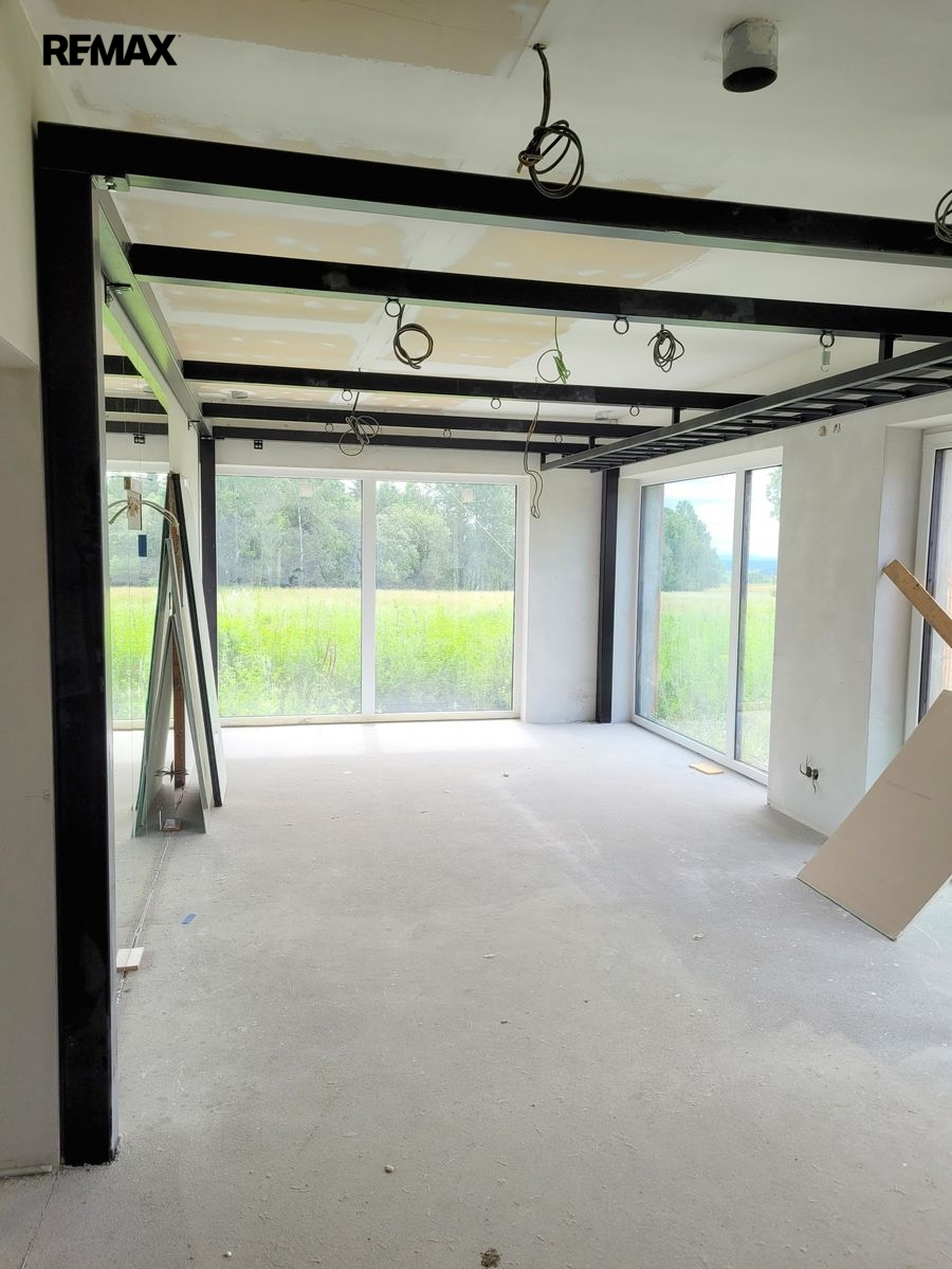 Dovolujeme si Vám nabídnout k prodeji novostavbu RD, kterou můžete dokončit podle Vašich představ ve vyhledávané lokalitě Rusalka u obce Bohutín okr. Příbram. Nemovitost je dispozičně řešena: 1.N.P. zádveří, garáž (104.46 m2), pracovna, chodba, WC + sprcha, technická místnost, sklad, obývací pokoj, jídelna + kuchyň, chodba, šatna, ložnice, koupelna, wellness, WC, tj. užitná plocha celkem 439.11 m2 a obytná plocha 137.31 m2. Podkroví: Hala – galerie, chodba, koupelna + WC, pokoj, pokoj, koupelna + WC, pokoj, tj. užitná plocha celkem 209.04 m2 a obytná plocha 96.23 m2.