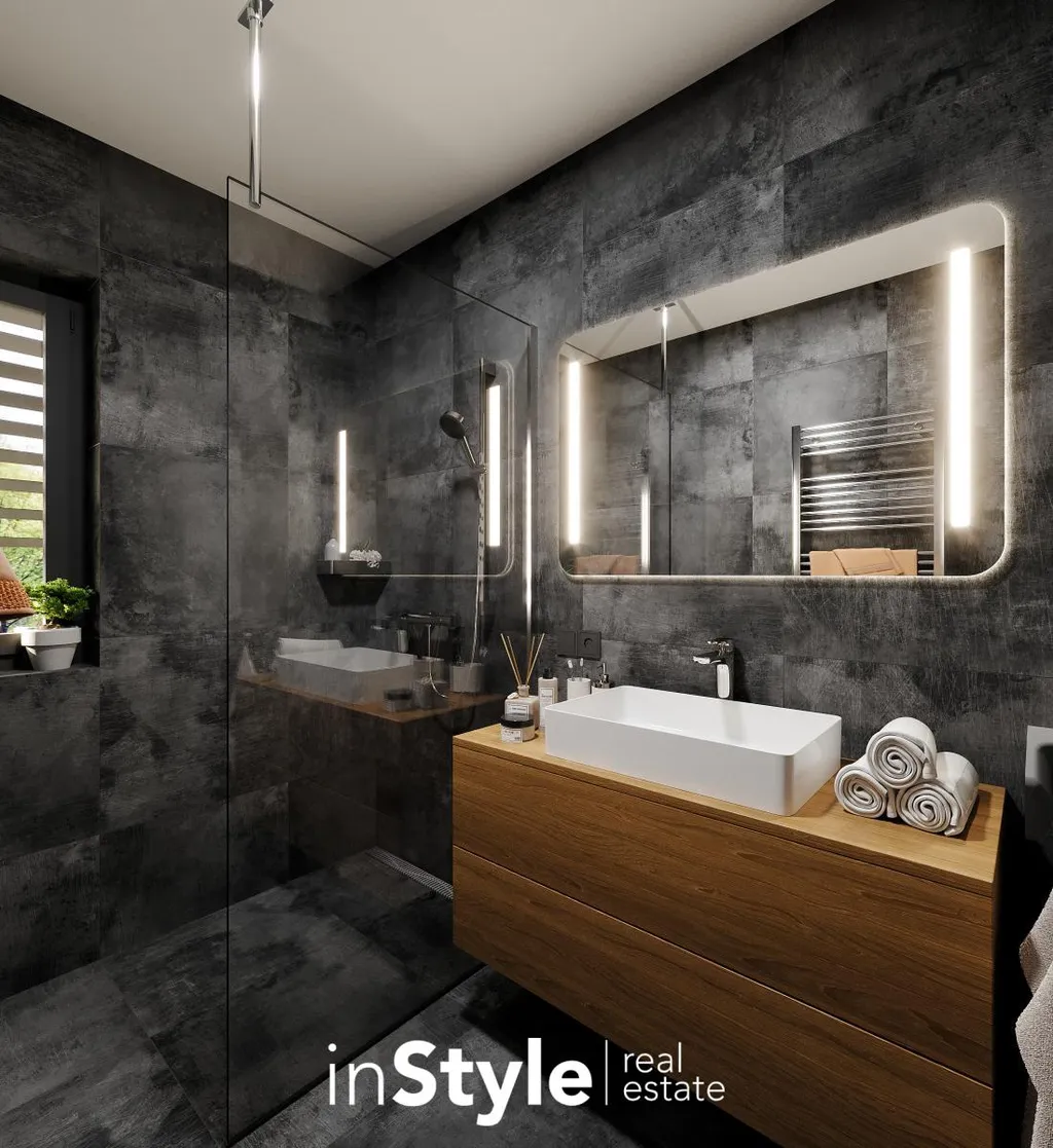 Exkluzivní rodinný dům č. 7, který se rozléhá na pozemku o celkové rozloze 493 m2, nabídne designové bydlení ve vysokém standardu. Ve všech rodinných domech budou použity kvalitní povrchové materiály a důraz je kladen na detail, bezpečnost a komfort bydlení.