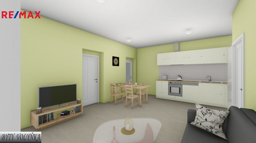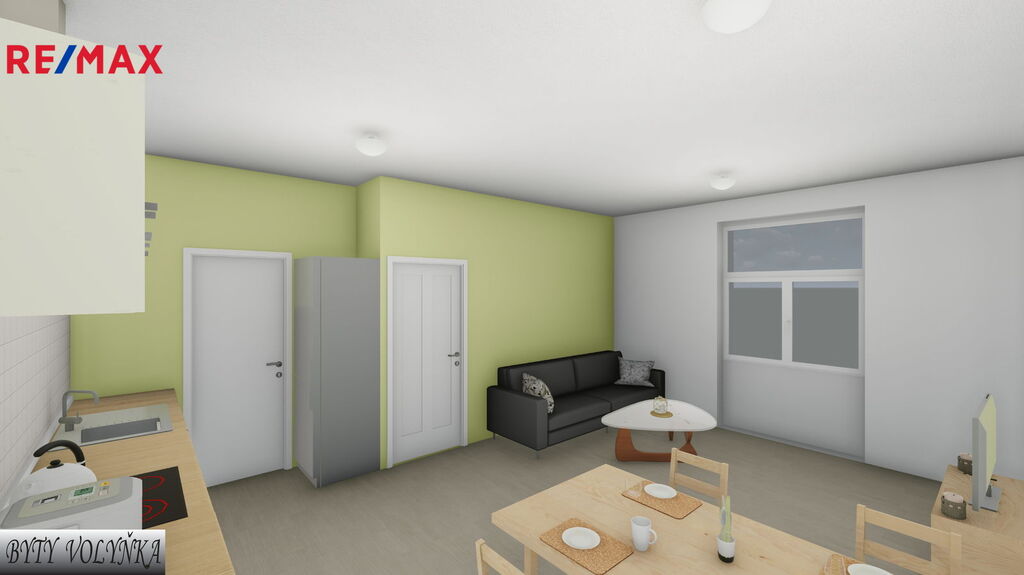 Jedná se o pátý byt v projektu bytů Volyňka, který vzniká rekonstrukcí objektu bývalých tiskáren ve Vimperku v těsné blízkosti řeky Volyňky - Rezidence Byty Volyňka