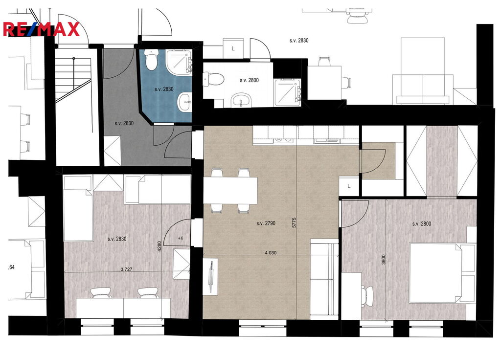 Byt je velmi specifický, stejně jako budou ostatní byty, což je dáno historickou budovou a moderní vestavbou. Byt je těsně před dokončením.