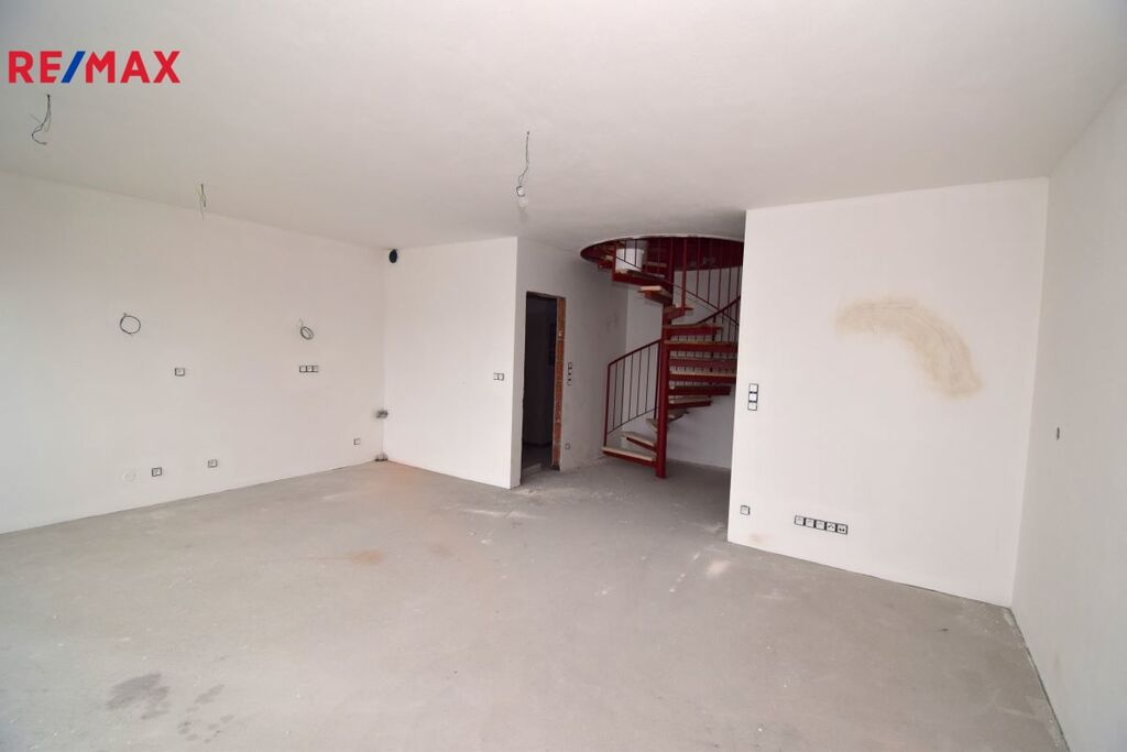 Za vchodovými dveřmi je předsíň se schodištěm, samostatné WC s umyvadlem a hlavní obývací prostor s přípravou na kuchyňskou linku. Z obývacího pokoje je vstup na lodžii, která má více než 8m2.
