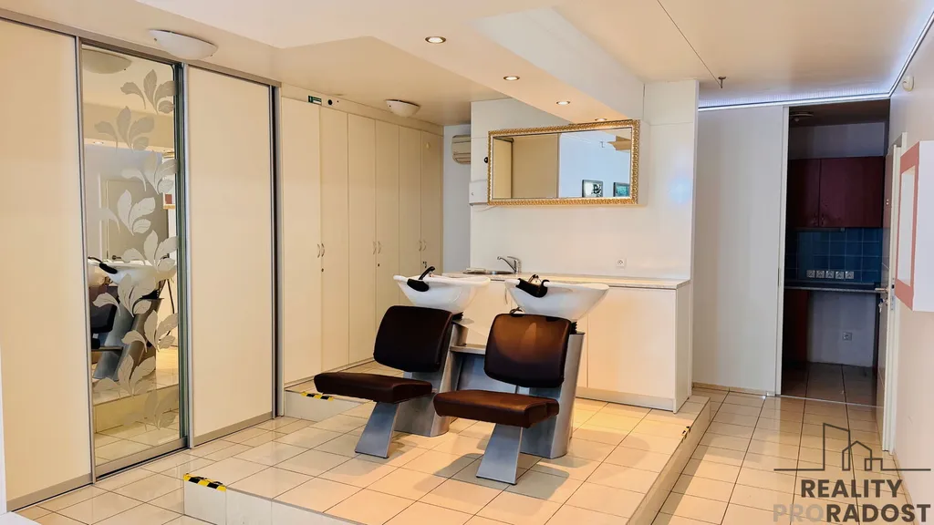 Nabízíme obchodní prostor pro široké využití (nyní zkolaudovaný a sloužící pro kadeřnické a kosmetické služby) v Praze 3-Žižkov v ulice Jeseniova 2851/32. Prostor se nachází v novostavbě a má výměru 107 m². Prostor je v současné době vybaven pro účely kadeřnictví a kosmetického salonu. Obsahuje místnost s vybavením pro pedikúru, místnost s lůžkem a vybavením pro masáže, sociální zařízení (samostatné WC, místnost se sprchovým koutem), kuchyňku s kuchyňskou linkou a vybavením, komoru s pračkou a sušičkou, WC pro personál a WC pro klienty, čekárnu a recepci. Prostor lze také využít jako ordinaci, kanceláře, vzorkovnu atd. Vytápění a příprava teplé vody jsou zajištěny vlastním plynovým kotlem, spotřeba studené vody je měřena samostatně. Pro bližší informace doporučujeme prohlídku.