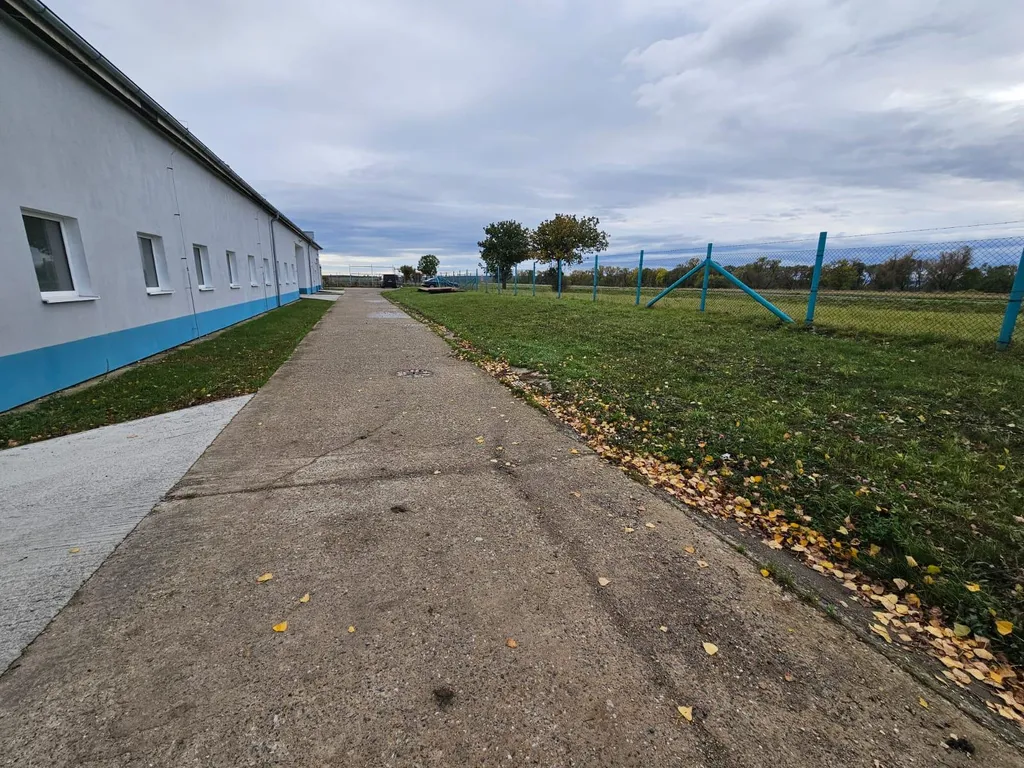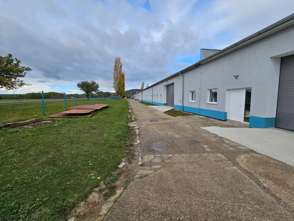 Hala k pronájmu je součástí většího komplexu, který se nachází u příjezdové cesty. Objekt má celkově 4 vstupní vrata pro větší osobní a nákladní vozidla a celkově 4 samostatné a vzájemně propojené haly. Objekt má nová plastová okna a nově vyhotovené betonové podlahy, jedná se o dřevostavbu.
