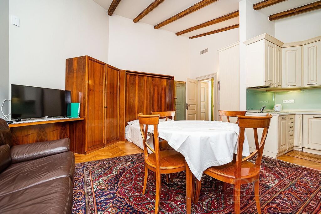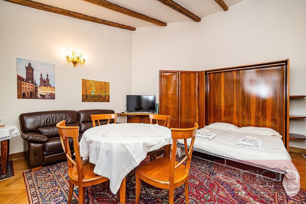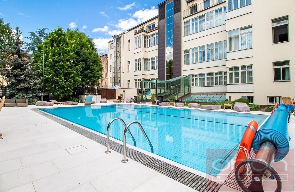 Nabízíme k pronájmu luxusní zařízený byt 1+kk s balkonem ve 4. patře neorenesančního domu Rezidence Italská z konce 19. století s udržovanou soukromou zahradou s vyhřívaným bazénem ve vyhledávané lokalitě Praha 2 - Vinohrady. Rezidenční dům je po kompletní rekonstrukci se zachováním všech architektonických prvků a je vybaven prémiovými a luxusními materiály. Nadstardantně zařízený byt o velikosti 38 m2 nabízí obývací pokoj orientovaný do vnitrobloku s výhledem na zahradu a bazén, plně vybaveným kuchyňským koutem vč. nádobí, koupelnu s vanou a s toaletou a balkon a velikosti 11 m2. Byt je vybaven italským nábytkem, ručně tkanými koberci, luxusními spotřebiči,, na podlahách jsou dřevěné parkety a dlažba. K vybavení bytu patří pračka se sušičkou, klimatizace, videotelefon, satelitní TV. Možnost zajistit pravidelný úklid bytu. V bytě jsou zachovány původní prvky. V rámci rezidence je také sauna, několikapatrové garáže, výtah, kamerový systém a ostraha. Součástí domu je vyhlášená italská cukrárna s produkty dovezenými přímo z Itálie. Možnost parkování v podzemní garáži za cenu od 200 Eur + DPH. Dům se nachází jen pár kroků od stanice metra Náměstí Míru, pár minut chůze na Václavské náměstí. V blízkosti je množství kaváren, vyhlášených restaurací, bister, lokálních obchodů, oblíbený park Riegrovy sady.