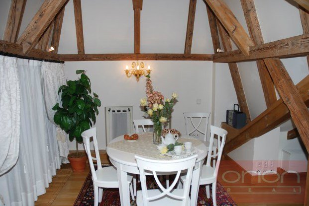 Nabízíme k pronájmu stylově zařízený podkrovní mezonetový byt 3+kk v 5. a 6. patře novorenesančního domu ze začátku 20. století ve vyhledávané lokalitě Prahy 1 - Nové Město. Dům je po celkové rekonstrukci se zachovalými původními architektonickými prvky, nachází se v historickém centru Prahy nedaleko Staroměstského náměstí. Celková plocha bytu 127 m2 nabízí ve spodním patře vstupní chodbu, prostorný obývací pokoj s krbem, kuchyň se všemi spotřebiči a luxusním nádobím, 1 ložnici, koupelnu s vanou a v horním patře je 1 ložnice s galerií. K vybavení bytu patří klimatizace, vysoké stropy, štuky, dřevěné parkety, dlažby, internet. Atraktivní lokalita s veškerou občanskou vybaveností a výborným dopravním spojením. Dům je situován jen pár kroků od stanice metra Náměstí Republiky a nákupního centra Palladium, několik minut pěšky od Prašné brány, Staroměstského náměstí s orlojem a dalšími památkami. Fotografie jsou ilustrativní. Možnost parkování za poplatek ve veřejné garáži. Volný od 1.2. 2026.