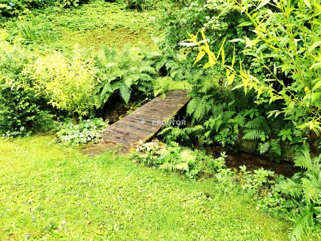 Nemovitost zahrnuje dvě pečlivě udržované zahrady. První zahrada, kaskádovitě uspořádaná, je osázena okrasnými dřevinami a květinami a je přístupná jednak od domu po kamenných schodech a ještě ze zadní ulice dřevěnou brankou. Druhá zahrada s rozlohou 792 m2 situovaná přes ulici, orientovaná na jihovýchod, poskytuje dostatek prostoru a soukromí pro relaxaci i zahradní aktivity. Tato zahrada je v zadní části obohacena protékajícím potůčkem, který dodává místu jedinečnou atmosféru a také okolním lesním porostem. Na tomto pozemku se nachází dřevěná chatka s potenciálem pro modernizaci, což zvyšuje užitnou hodnotu nemovitosti. Před domem je možné zaparkovat automobil, ulice je dostatečně široká.