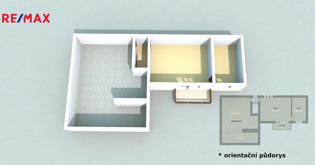 pokoj 22,10 m2, schodiště s podestou 3,96 m2,