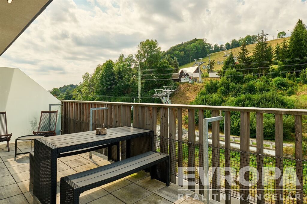 Nabízím k prodeji luxusní horský apartmán s dispozicí 2+kk o rozloze 62 m² s prostornou terasou 29 m² s elektrickými venkovními žaluziemi na dálkové ovládání v prestižní rezidenci Rotterovka v Hořejším Vrchlabí. Součástí apartmánu je kryté parkovací stání a sklepní kóje vybavená jako lyžárna.