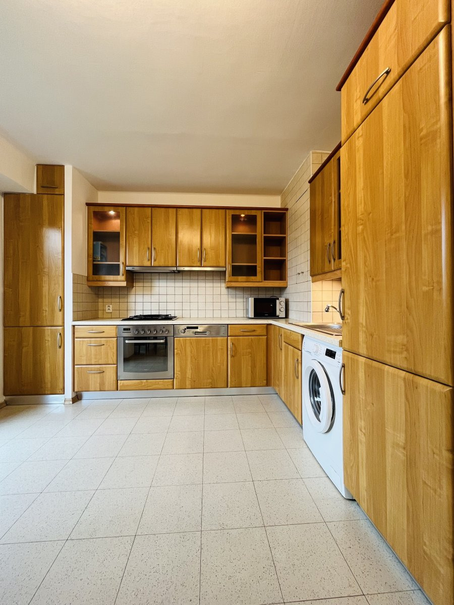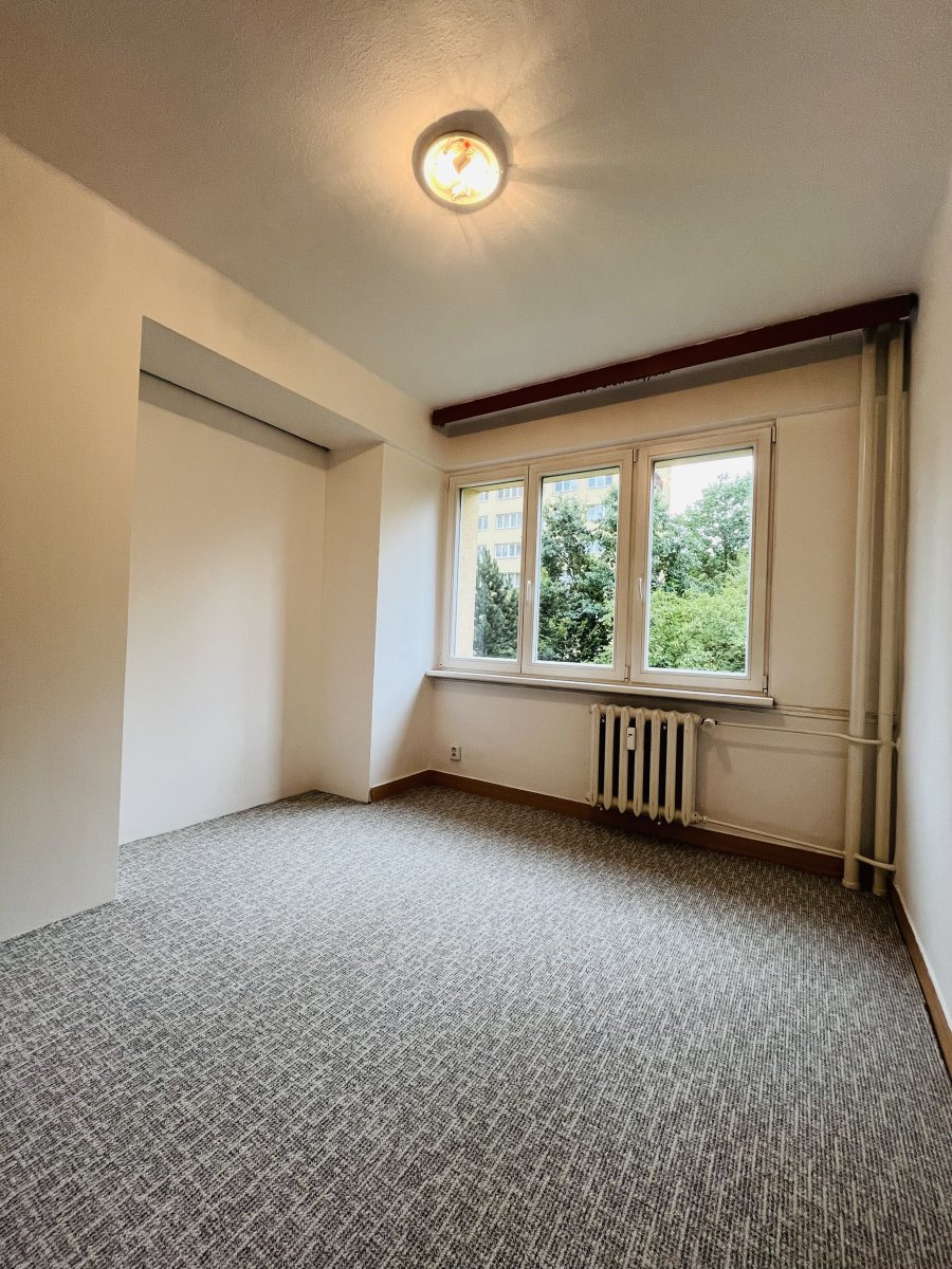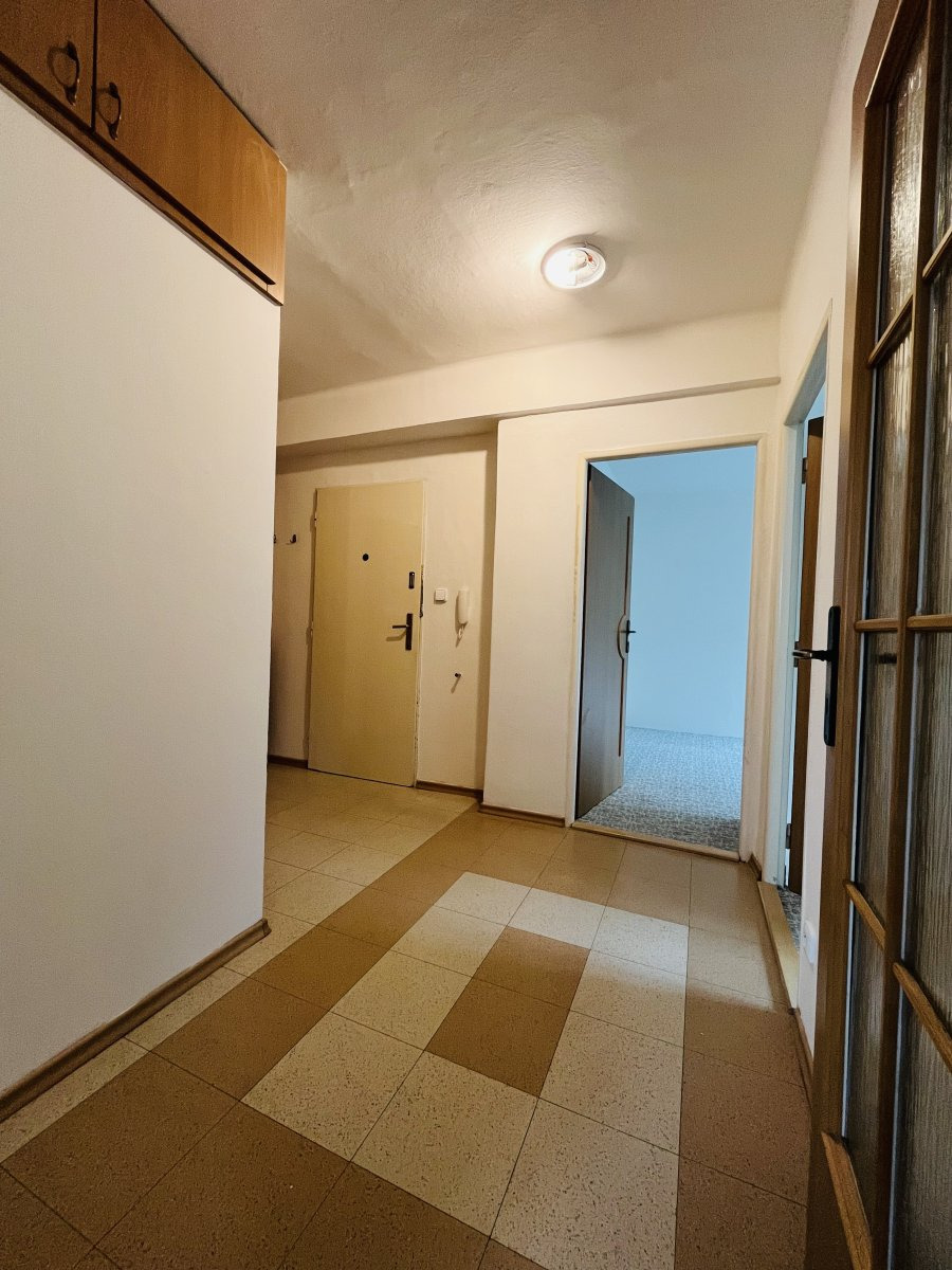 Nabízí se částečně vybavený. Z prostorné předsíně se dostaneme do všech místností. Průchozím pokojem také do kuchyně z které můžeme vstoupit na balkon. Kuchyně disponuje elektrickou troubou, plynovým sporákem s digestoří, myčkou, lednicí, pračkou a mikrovlnou troubou.Stůl, židle a obývací stěna může být ponechána nebo vystěhována. V koupelně najdeme vanu. Toaleta je umístěna samostatně. Dva neprůchozí pokoje. Zálohové platby jsou počítané na dvě osoby, v ceně jsou zahrnuty energie a pojištění bytu.