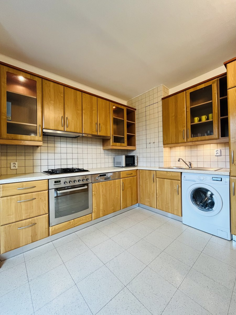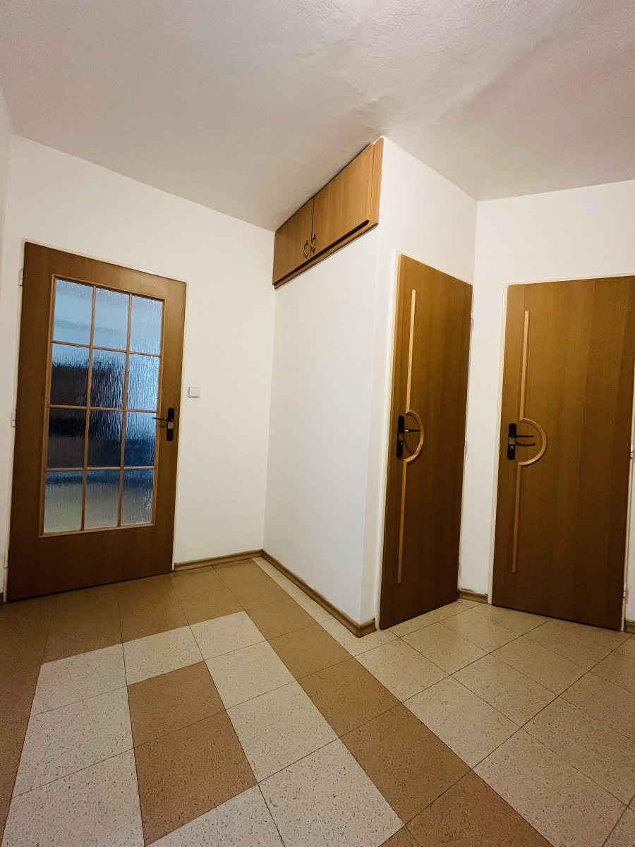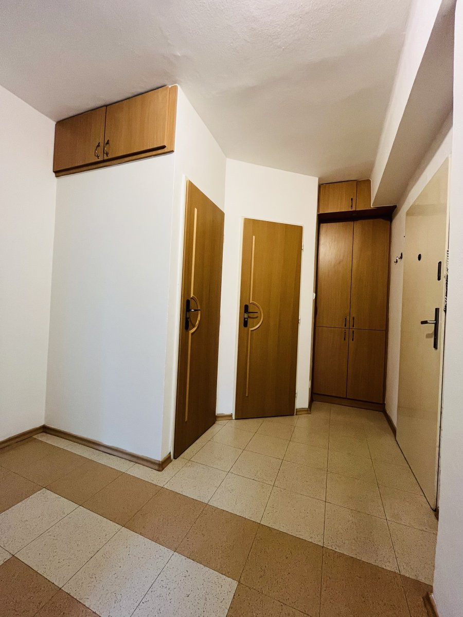 Nabízí se částečně vybavený. Z prostorné předsíně se dostaneme do všech místností. Průchozím pokojem také do kuchyně z které můžeme vstoupit na balkon. Kuchyně disponuje elektrickou troubou, plynovým sporákem s digestoří, myčkou, lednicí, pračkou a mikrovlnou troubou.Stůl, židle a obývací stěna může být ponechána nebo vystěhována. V koupelně najdeme vanu. Toaleta je umístěna samostatně. Dva neprůchozí pokoje. Zálohové platby jsou počítané na dvě osoby, v ceně jsou zahrnuty energie a pojištění bytu.