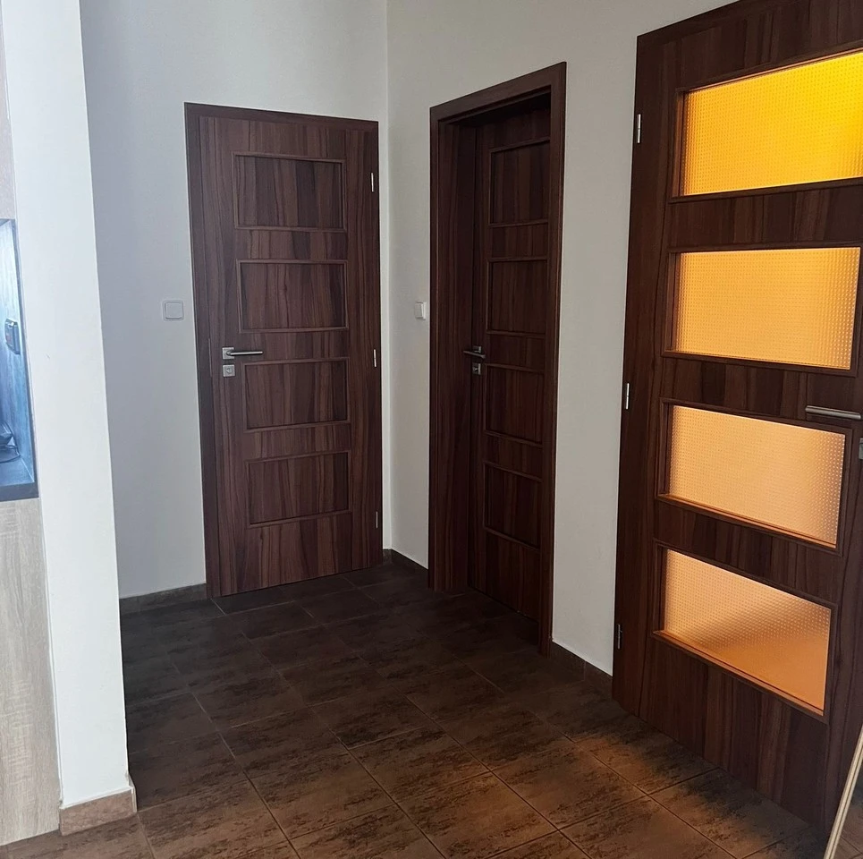 Plastová okna se žaluziemi, ve dvou pokojích včetně obývacího pokoje plovoucí podlaha, předsín, kuchyň a WC dlažba, tři vestavěné skříně, vytápění vlastním elektrokotlem, klimatizace, ohřev vody vlastním bojlerem, nová kuchyňská linka, myčka, lednice. K bytu je možno si domluvit parkovací místo pro automobil či motorku na soukromém pozemku-parkovišti, před domem.