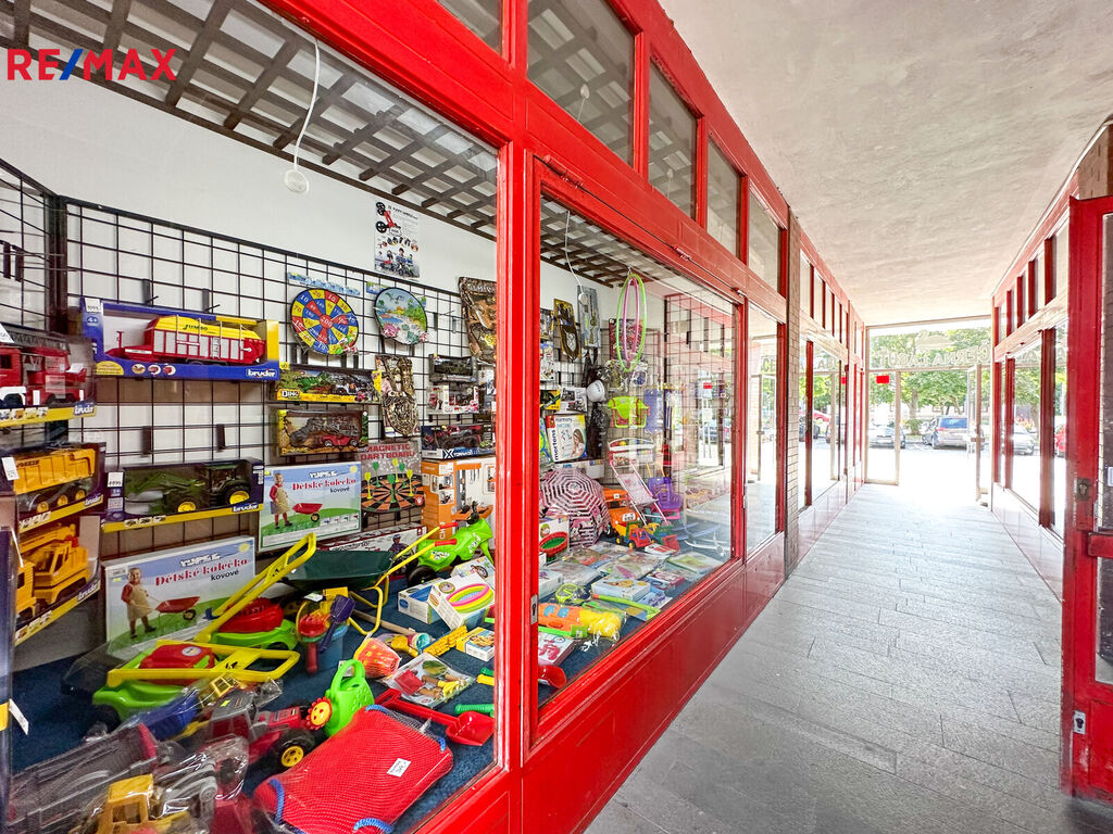 1.NP (pravá strana budovy) užitná plocha 209 m2 – obchodní prostor 176,80 m2, sociální zařízení, sklad, úklidová místnost, chodba a kancelář.