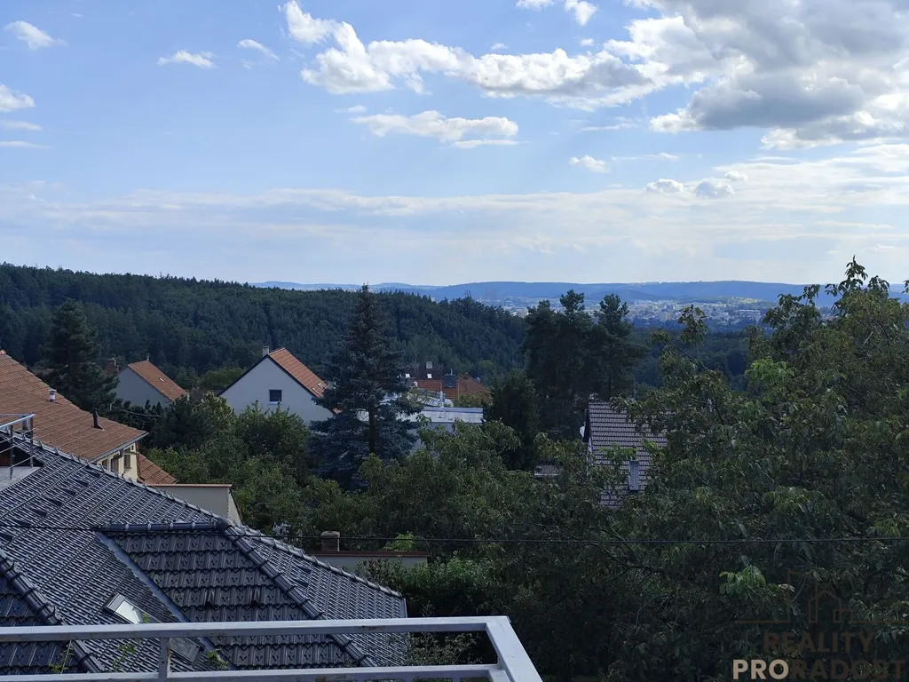 Dům je položen ve třetí linii zhora a terasa nabízí netypické výhledy směrem na sever Brna. Obec má částečně vilový a částečně rurální charakter, dům je ve slepé ulici. Díky položení nad brněnskou kotlinou zde budete dýchat mimořádně čistý vzduch.