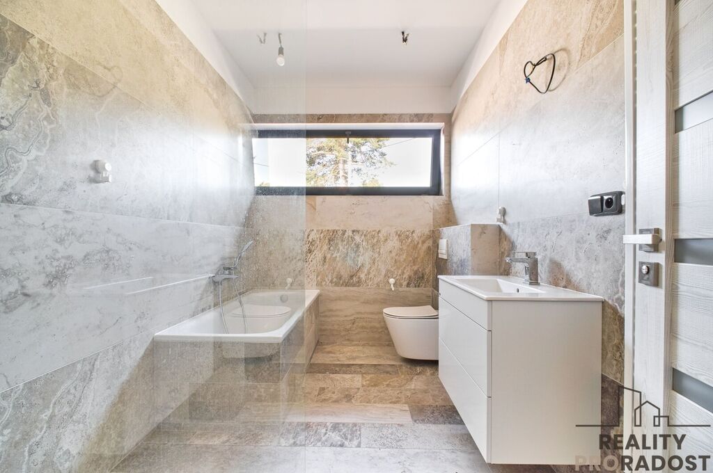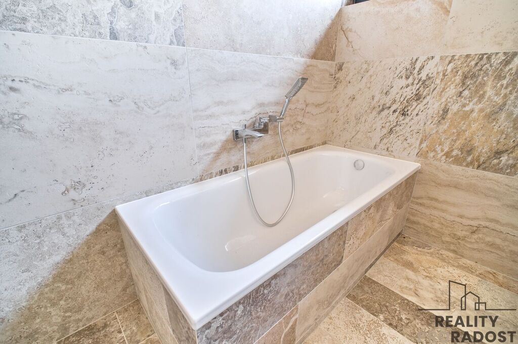 Dále pak koupelna, která vám nabídne, jak vanu, tak sprchovací kout, wc a navíc samostatná toaleta mezi pokoji. Technická místnost, kde hravě schováte pračku se sušičkou a nějaký ten bordel navíc.