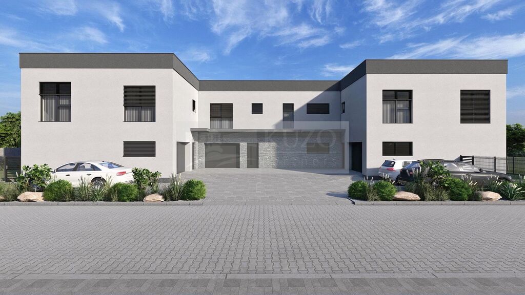 V moderní a prakticky řešené vile, najdete jednotku o dispozici 4+kk a komfortních 152 m2 vnitřní užitné plochy ve dvou podlažích. Podlahová plocha jednotky je 160 m2. Součástí jednotky je vlastní garáž a k tomu je před vilou další privátní parkovací stání. V zadní části domu si budete užívat privátní rovinatou zahradu o výměře 286 m2, která navazuje na venkovní terasu. Celková výměra pozemku, který náleží k této jednotce je 440 m2.