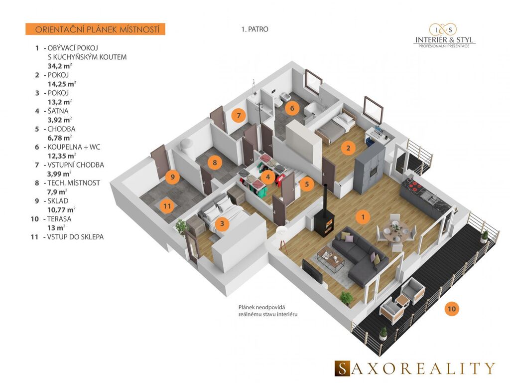 Exklusivně nabízíme k prodeji novostavbu v obci Buš nedaleko Slapské přehrady, která byla zkolaudovaná v roce 2024, poskytuje opravdu nádherný výhled do krajiny a má dispozici 6+kk s obytnou plochu 181m2. Pro lepší orientaci najdete ve fotogalerii orientační 3D plán včetně velikosti všech místností. Dům byl postaven jako dvougenerační, takže má každé patro samostatný vchod a vlastní 13m2 terasu, ale obě patra se dají samozřejmě propojit schodištěm. Mimo oplocení a fasády je potřeba dokončit některé interiérové věci, což poskytuje novému majiteli možnost dodělat si vše podle vlastního uvážení.
