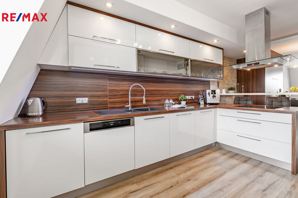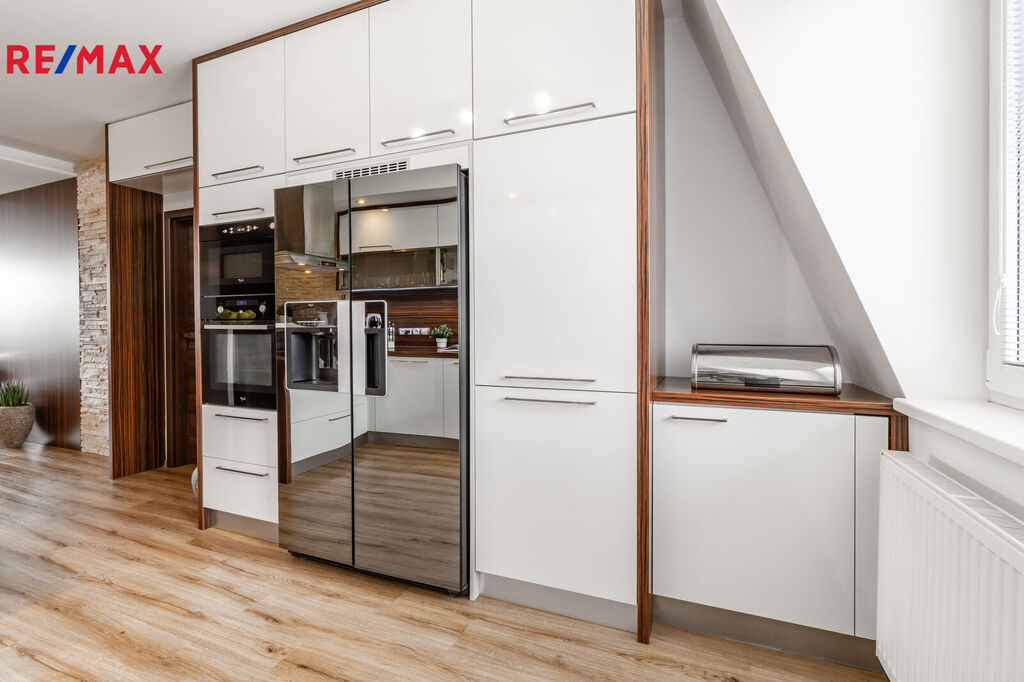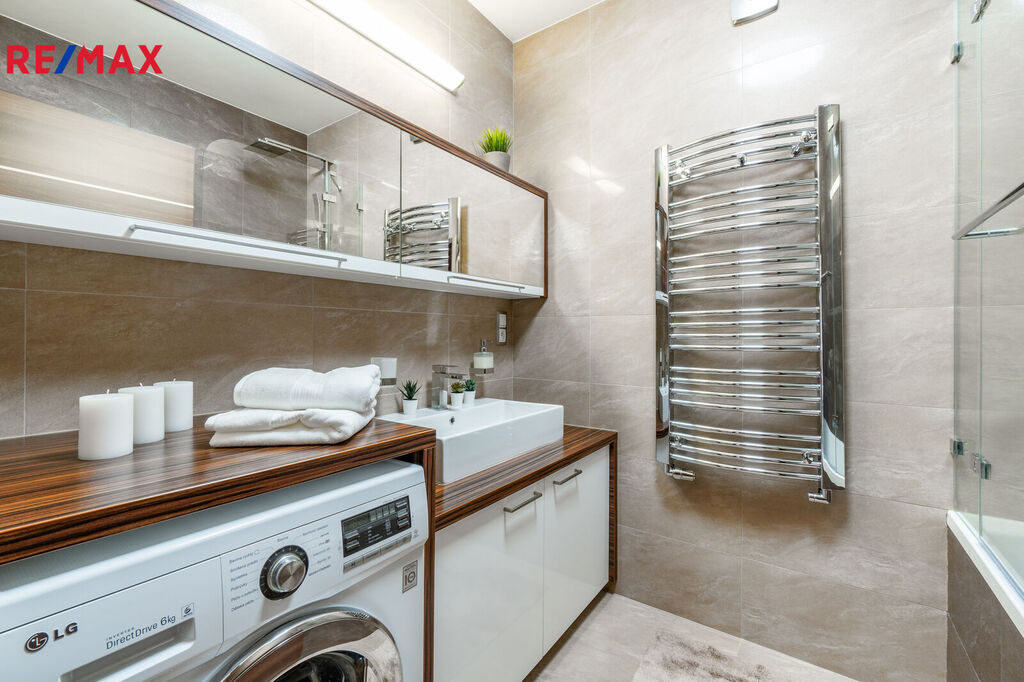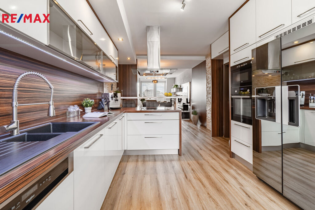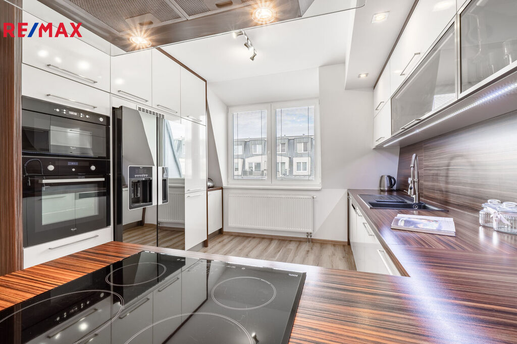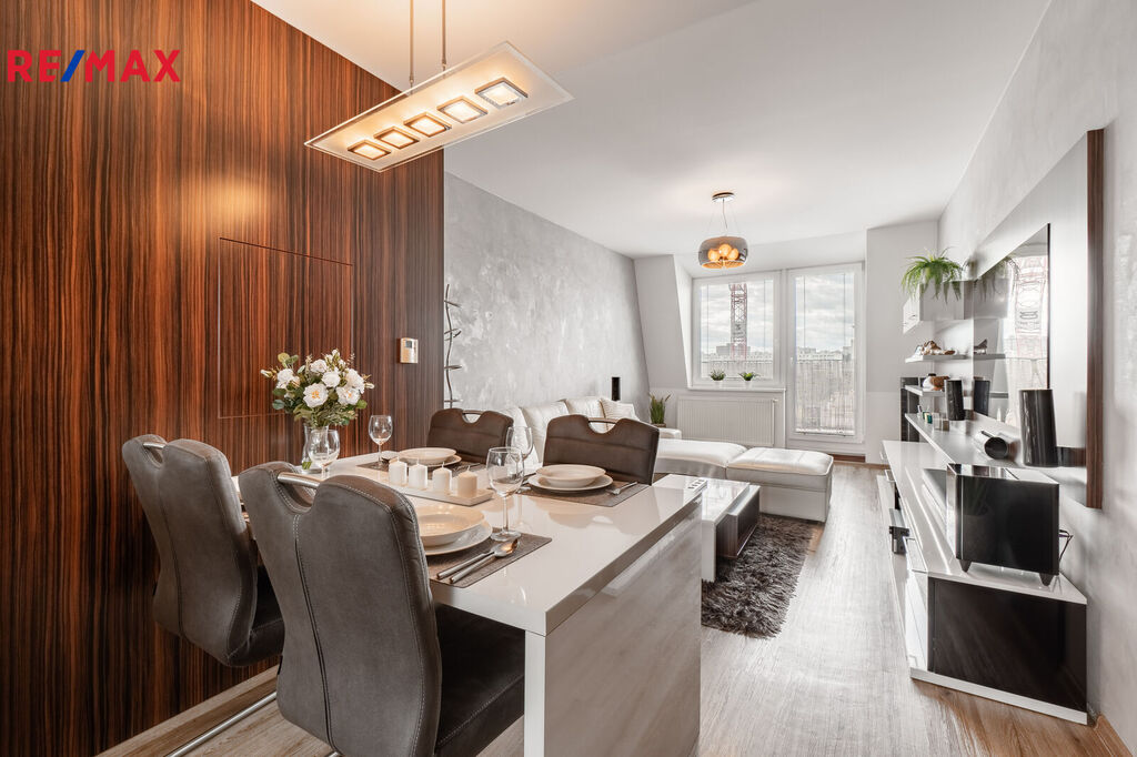 Byt je kompletně vybaven nábytkem a příslušenstvím, které je součástí prodeje. Návrh a realizaci bytu prováděl designér s architektem. V bytě je zakázkový nábytek na míru, bezpečnostní dveře, vinylové podlahy, v koupelně a na toaletě je dlažba. Byt je čerstvě vymalovaný. Dostupný ihned.