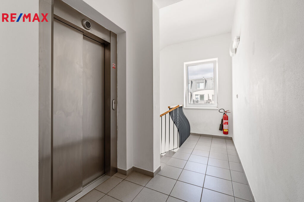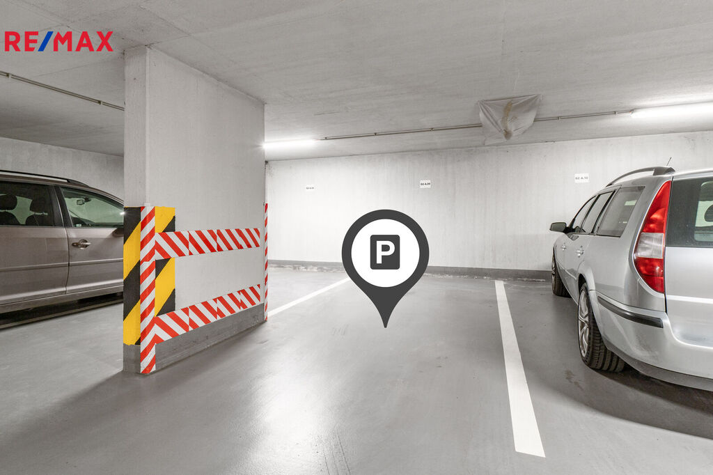 K bytu je nutné koupit garážové stání za cenu 600 000 Kč, které je přímo pod domem, odkud je snadný bezbariérový vstup do bytu pomocí výtahu. V garážích je také společná kolárna a společný sklep.